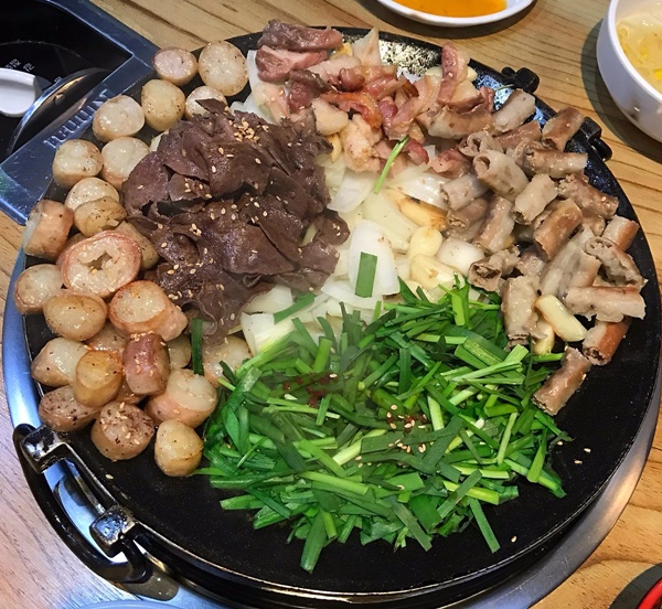 Ȱ Àαٿ¡ ¼ö¸¹Àº °öâÁýÀÌ ÁñºñÇÏ°Ô ´Ã¾î ÀÖ´Ù. ¸ðµÎ ÀαⰡ ÁÁÁö¸¸, ±×Áß '¼è°¡¸® ÇÑ¿ì °öâ'Àº ¿À·£ ½Ã°£ µ¿¾È »ç¶û¹Þ¾Æ¿Â °öâÁýÀÌ´Ù. ´çÀÏ µé¿©¿Â ½Å¼±ÇÑ ¼Ò ³»À常 »ç¿ëÇÏ¿© ½Å·Ú°¨ÀÌ ´À²¸Áú »Ó¸¸ ¾Æ´Ï¶ó, ǰ±ÍÇö»óÀ¸·Î ´çÀÏ ÁغñµÈ ¹°·®ÀÌ ¶³¾îÁö¸é ¿µ¾÷À» Á¾·áÇÑ´Ù. À̰÷ÀÇ ¶Ç ´Ù¸¥ ÀåÁ¡Àº Àú·ÅÇÑ °¡°Ý. °öâ, ¸·Ã¢, ´ëâ, ¿°ÅëÀ¸·Î ÀÌ·ç¾îÁø ¸ðµÒ±¸À̰¡ 1Àκп¡ 12,900¿øÀÌ´Ù. ³ÐÀº ¹«¼è ÆÒ¿¡ °¡Áö·±È÷ Ç÷¹ÀÌÆÃµÈ ¼Ò ³»ÀåÀº ¸ðµÎ 100% ±¸¿öÁ® ³ª¿À±â ¶§¹®¿¡ ±â´Ù¸² ¾øÀÌ ¹Ù·Î ¸Ô¾îµµ µÈ´Ù. °öâ ¿·¿¡ ¼öºÏÀÌ ´ã°Ü ³ª¿À´Â ºÎÃß, ¾çÆÄ, ¸¶´ÃÀº ¹«ÇѸ®ÇÊ·Î ¸¶À½²¯ ¸ÔÀ» ¼ö ÀÖ´Ù.