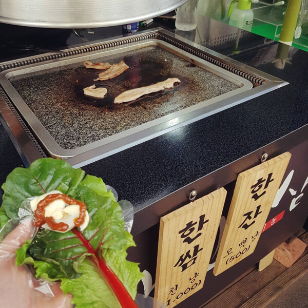 °í±êÁýÀ» Áö³ª°¥ ¶§¸é °í±â ÇÑ Á¡ ¸Ô°í ½Í´Ù°í »ý°¢µÉ ¶§°¡ ÀÖ´Ù. °í±â 1Àκи¸ ÆÇ¸ÅÇÏ´Â °÷µµ ã±â ÈûµéÁö¸¸, 1913¼ÛÁ¤¿ª½ÃÀå °¡¸é ½ÇÁ¦·Î °í±â ÇÑ Á¡¸¸ ÆÇ¸ÅÇÏ´Â °÷À» º¼ ¼ö ÀÖ´Ù. ¡®¿ì¾ÆÇѽӡ¯Àº »ï°ã»ì ÇÑÁ¡°ú ¼¿ÇÁ ½ÓÀ» ´Üµ· õ ¿ø¿¡ Áñ±æ ¼ö ÀÖ´Â °÷À¸·Î, õ ¿øÀ» Åë¿¡ ³ÖÀ¸¸é µ¹ÆÇ¿¡ ¹Ù·Î »ï°ã»ìÀ» ±¸¿öÁØ´Ù. ½Ó ä¼Ò´Â ¿·¿¡ ¸¶·ÃµÈ ¼¿ÇÁ Äڳʿ¡¼ ºñ´ÒÀå°©À» ³¢°í ¿øÇÏ´Â ½Ó ä¼Ò¿Í ¼Ò½º¸¦ °çµé¿© ¸ÔÀ¸¸é µÈ´Ù. ¿©±â¼ ±×Ä¡Áö ¾Ê°í Àü ¼ÒÁÖ¸¦ ´Üµ· 500¿ø¿¡ ÆÇ¸ÅÇÑ´Ù. ³» ¸¾´ë·Î ÇÑ ½ÓÀ» ¸¸µé¾î ¼ÒÁÖ ÇÑÀÜ °çµé¿© ¸ÔÀ¸¸é ±×¸¸ÀÌ´Ù.
