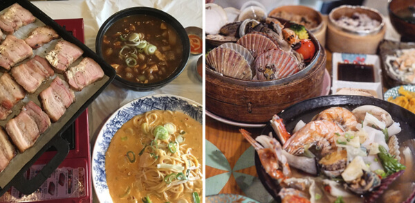 ³ª¹« ÂòÅë¿¡ À½½ÄÀ» ³Ö°í ¼öÁõ±â¸¦ ÀÌ¿ëÇØ ÂǼ ¸Ô´Â ÀϺ» ÀüÅë ¿ä¸® ¡®¼¼ÀÌ·Î ¹«½Ã¡¯´Â °í±â¿Í ÇØ»ê¹° ¹öÀü 2°¡Áö·Î ÃëÇâ¿¡ µû¶ó ¼±ÅÃÇÒ ¼ö ÀÖ´Ù. °í±â ¹öÀüÀº ¾ã°Ô ½ã µÅÁö°í±â¿Í ¼Ò°í±â ±×¸®°í ¹ö¼¸, È£¹Ú, µÎºÎ µî °¢Á¾ ä¼Ò°¡ ǪÁüÇÏ°Ô Á¦°øµÇ¸ç, ÇØ¹° ¹öÀüÀº ¸ð½ÃÁ¶°³, °¡¸®ºñ, »õ¿ì, È«ÇÕ µî°ú °¢Á¾ ¹ö¼¸ÀÌ ÇÔ²² Á¦°øµÈ´Ù. ¶Ç ´Ù¸¥ ÀϺ» °¡Á¤½Ä ¿ä¸®ÀÎ ¡®¿ÀŰ³ª¿Í Â÷½´¡¯´Â »ï°ã»ìÀ» °£Àå º£À̽º¿¡ Àú¿Â ·Î½ºÆÃÇØ ÃËÃËÇϰí À°ÁúÀÌ ºÎµå·¯¿ì¸ç, °çµé¿© ³ª¿À´Â ¹èÃß, ºÎÃß ¹«Ä§°ú ÇÔ²² ¸ÔÀ¸¸é Àß ¾î¿ï¸°´Ù. ¡®¿ä¼¼³ªº£¡¯, ¡®Å丶Å䳪º£¡¯ µî °èÀý¸¶´Ù ´Ù¾çÇÏ°Ô ¼±º¸ÀÌ´Â ³ªº£¿ä¸® ¿ª½Ã ÀαⰡ ÁÁ´Ù. ¸ðµç ¸Þ´º°¡ À£ºù ¿ä¸®·Î ÀÚ±ØÀûÀÌÁö ¾Ê°í ´ã¹éÇÏ´Ï °Ç°ÇÏ°Ô Áñ±æ ¼ö ÀÖ´Ù.