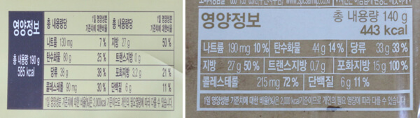 ¿µ¾ç Á¤º¸¸¦ »ìÆìº¸¸é CU ¼îÄݶó »ýÅ©¸² ÄÉÀÌÅ©´Â ³ªÆ®·ý 130mg, ź¼öȹ° 80g, ´ç·ù 38g, Áö¹æ 27g, Æ®·£½ºÁö¹æ0g, Æ÷ÈÁö¹æ 3.2g, ÄÝ·¹½ºÅ×·Ñ 90mg, ´Ü¹éÁú 6gÀÌ´Ù. GS25 ·Î¾âƼ¶ó¹Ì¼ö´Â ³ªÆ®·ý 190mg, ź¼öȹ° 44g, ´ç·ù 33g, Áö¹æ 27g, Æ®·£½ºÁö¹æ 0.7g, Æ÷ÈÁö¹æ 15g, ÄÝ·¹½ºÅ×·Ñ 215mg, ´Ü¹éÁú 6gÀÌ´Ù. GS25 ·Î¾â Ƽ¶ó¹Ì¼ö´Â CU ¼îÄݶó »ýÅ©¸² ÄÉÀÌÅ© º¸´Ù Æ÷ÈÁö¹æ°ú ÄÝ·¹½ºÅ×·ÑÀÌ ºñ±³Àû ³ô´Ù. Æ®·£½º Áö¹æµµ 0.7gÀÌ µé¾îÀÖÀ¸´Ï ÇÑ ¹ø¿¡ ¸ÔÁö ¾Ê°í ³ª´©¾î ¸Ô´Â °ÍÀÌ ÁÁ´Ù.