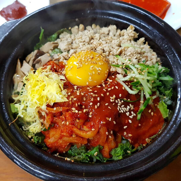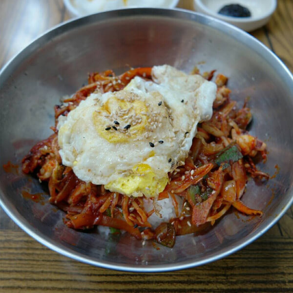 ±º»ê ½Ã¹ÎµéÀÌ »ç¶ûÇÏ´Â Àå¹ÌÄ®±¹¼ö. ±º»ê¿¡¼´Â ²Ï ¾Ë·ÁÁø ¸ÀÁýÀ¸·Î À̰÷ÀÇ ´ëÇ¥ ¸Þ´º´Â Ä®±¹¼ö¿Í ºñºö¹ä. ¸¶Ä¡ ÇҸӴϰ¡ ¸¸µé¾îÁֽаÍó·³ ÁøÇÑ °¨Ä¥¸ÀÀ» ÀÚ¶ûÇÏ´Â ±¹¹°°ú Àû´çÈ÷ »î¾ÆÁø Ä®±¹¼ö ¸é¹ßÀÌ ¾î¿ì·¯Á® ¼ÓÀ» µçµçÇÏ°Ô Ã¤¿öÁØ´Ù. µ¹¼Ü¿¡ ³ª¿À´Â ºñºö¹äÀº ¿ÀÀÌ, ¹«»ýä, ¹ö¼¸, Äᳪ¹° µî °¢Á¾ ³ª¹°°ú ´ÙÁø °í±â ±×¸®°í ³ë¸¥ÀÚ ÇÑ °³°¡ ¿Ã·ÁÁ® ³ª¿Â´Ù. °íÃßÀå ¼Ò½º¿¡ ¾³½Ï ºñº ³ë¸¥ÀÚ¸¦ Åå ÅÍÆ®·Á ¸ÔÀ¸¸é ±×¾ß¸»·Î ÀÏǰÀÌ´Ù. »ì¦ ´Àº¹äÀ» ±Ü¾î ¸Ô´Â Àç¹Ìµµ ÀÖ´Ù.