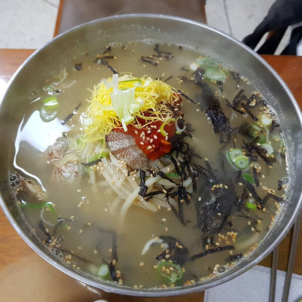 °í¼ÒÇÑ Äá±¹¼öµµ ¼Õ´ÔµéÀÌ ¸¹ÀÌ Ã£´Â ¸Þ´º·Î, Äá±¹¹° À§¿¡ Äá°¡·ç°¡ µÕµÕ ¶°ÀÖ´Â ÀÌ»öÀûÀÎ ºñÁÖ¾óÀÌ È£±â½ÉÀ» ÀÚ±ØÇÑ´Ù. °í¼ÒÇÑ Äá±¹¹°°ú Â̱êÇÑ ¸é¹ßÀÇ Á¶È´Â ÃÖ»óÀÇ ¾î¿ï¸²À» ÀÚ¶ûÇÑ´Ù. ¸ÅÄÞÇÑ °ÑÀýÀ̵µ ÈǸ¢Çѵ¥, ¾Æ»èÇÏ°í ºÎµå·¯¿ì¸ç Â¥Áö ¾Ê¾Æ ÁÖ¿¬ ¸øÁö¾ÊÀº Á¶¿¬ ¿ªÇÒÀ» ÅåÅåÈ÷ ÇØÁÖ´Â ¹ÝÂùÀÌ´Ù. ¸ðµç ¸Þ´º´Â Æ÷ÀåÀÌ °¡´ÉÇϸç, °ÑÀýÀÌ¿Í ±ïµÎ±â ¿ª½Ã Æ÷Àå ÆÇ¸ÅÇÑ´Ù. °¡±î¿î Áö¿ªÀº ¹è´Þ ¼ºñ½ºµµ ¿î¿µÇϰí ÀÖ´Ù. ±º»ê»Ó¸¸ ¾Æ´Ï¶ó Àü±¹¿¡¼ ã¾Æ¿À´Â °ü±¤°´µéÀÇ ÀÔ¸À±îÁö »ç·ÎÀâÀ¸¸é ±º»ê ¿©Çà ½Ã ²À ¸ÀºÁ¾ß ÇÏ´Â ¸Ô¹æÄÚ½º·Î ¶°¿À¸£°í ÀÖ´Ù.