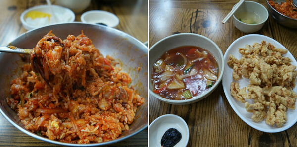 Åä·Å ¹æ½ÄÀ¸·Î ¹äÀÌ ¸»¾ÆÁ® ³ª¿À´Âµ¥, ¹ä¾Ë¿¡ ±¹¹°ÀÌ Àß ¹è¾îµé¾î ÁøÇÑ ¸ÀÀ» ³½´Ù. ±¹¹ä¿¡ ±èÄ¡°¡ µé¾îÀÖ¾î ±èÄ¡ ±¹¹äÀ» ¸Ô´Â µíÇÑ ´À³¦µµ µç´Ù. ÀÌ ÁýÀÇ ¶Ç ´Ù¸¥ ¹¦¹Ì´Â ¹æ¾ÆÀÙ. µÅÁö±¹¹ä À§¿¡ ºÎÃß¿Í ¹æ¾ÆÀÙÀ» °¡µæ ³Ö¾îÁִµ¥, ÀÌ ¹æ¾ÆÀÙÀÌ µÅÁö À⳿»õ´Â Àâ¾ÆÁÖ°í ¾óÅ«ÇÑ ±¹¹° ¸ÀÀ» »ì·Á ¹Ð¾ç µÅÁö±¹¹äÀÇ Á¦¸ÀÀ» ´À³¥ ¼ö ÀÖ´Ù. ¹æ¾ÆÀÙ¸¸ÅÀ̳ª ǪÁüÇÏ°Ô µé¾îÀÖ´Â ³»Àå°ú ¸Ó¸® °í±â ¶§¹®¿¡ ÇÑ ±×¸©¸¸ ¸Ô¾îµµ ¼ÓÀÌ µçµçÇÏ´Ù.