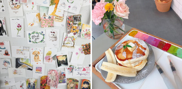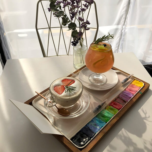 ¼öÃ¤È ÆÈ·¹Æ®¿Í ¿öÅͺ귯½¬, Á¾ÀÌ, Æ®·¹À̰¡ Á¦°øµÇ¾î ÀÚÀ¯·Ó°Ô ±×¸²À» ±×¸± ¼ö ÀÖ°í, °¡°Ô ÇÑÄÒ¿¡´Â ¹æ¹®°´ÀÌ ³²°Ü³õÀº ÀÛǰÀ» ±¸°æÇÏ´Â Àç¹Ìµµ ÀÖ´Ù. Á¾ÀÌ´Â ±âº»À¸·Î Á¦°øÇÏÁö¸¸, ´õ ±×¸®°í ½ÍÀ» °æ¿ì Ãß°¡·Î ±¸¸ÅÇÒ ¼ö ÀÖ´Ù. ¶ÇÇÑ, ¼ÕÀ» ¾ÄÀ» ¼ö ÀÖ´Â ¼¼¸é´ë°¡ Ä«Æä ³»¿¡ ¸¶·ÃµÇ¾î ÀÖ¾î ÆíÇÏ´Ù. ÀÌ»öÀûÀÎ Ä«Æä¸¦ ÃßõÇÑ´Ù¸é ¸ÀÀÖ´Â À½·áµµ Áñ±â°í ±×¸²µµ ±×¸± ¼ö ÀÖ´Â ÇÇÄ¡±×·¹À̸¦ ÃßõÇÑ´Ù.