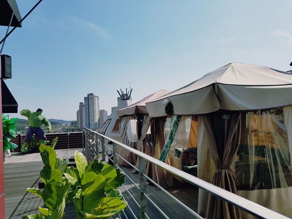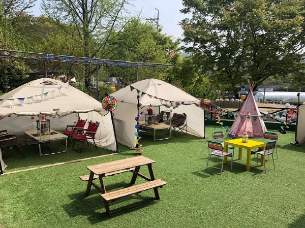 ºê·±Ä¡¸¦ ºñ·ÔÇØ ÀÔ¸ÀÀ» ÀúÀý·Î ´Ù½Ã°Ô ÇÏ´Â ½Ä»ç ¸Þ´ºµµ ²Ï ´Ù¾çÇÑ ¸¶³à Ä¿ÇÇ, »ç½Ç ¾ÈÂʸ¸ ¾³ µÑ·¯ºÃÀ» ¶§´Â À̰÷ÀÌ ¿Ö Ä·ÇÎ Ä«ÆäÀÏ±î ½ÍÁö¸¸ Å׶󽺷Π³ª°¡¸é ºÐÀ§±â°¡ ¹ÝÀüµÈ´Ù. ²Ï ¸¹Àº Àεð¾ð ÅÙÆ®°¡ ¤§ÀÚ ÇüÅ·ΠÅ׶󽺿¡ ÁÙÁö¾î ÀÖ°í ÅÙÆ® ³»ºÎ¿¡´Â À½·á¿Í ½Ä»ç¸¦ ÆíÇÏ°Ô ÇÒ ¼ö ÀÖµµ·Ï Å×À̺í°ú Æí¾ÈÇÑ ÀÇÀÚ°¡ ¸¶·ÃµÇ¾î ÀÖ´Ù. ºñ·Ï °Ç¹° Å׶󽺿¡ ¸¸µé¾îÁø °ø°£ÀÌÁö¸¸ ÅÙÆ®ÀÇ ºÐÀ§±âµµ ±×·¯ÇÏ°í ¶Ç ³ôÀº °÷¿¡¼ Çϴðú Á» ´õ °¡±õ°Ô ÀÖ´Ù´Â ±âºÐ¸¸À¸·Îµµ ÃæºÐÈ÷ Èú¸µÀÌ µÈ´Ù.