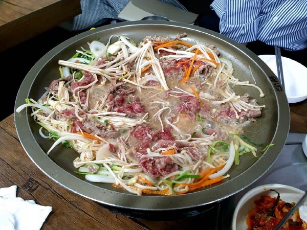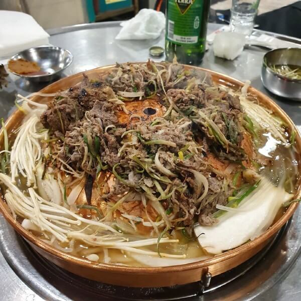 ±¹¹°ÀÌ ÀÖ´Â ¼¿ï½Ä ºÒ°í±â¸¦ ¸Àº¼ ¼ö ÀÖ´Â °÷À¸·Î ºÒ°í±âºÎÅÍ ¼Ò »ýµî½É, ±èÄ¡¸»À̱¹¼ö, °¥ºñÅÁ, ¼Ò°í±â¹«±¹ µîÀÇ ¸Þ´º°¡ ÀÖ´Â ½Ä´çÀÌ´Ù. ¹ö¼¸°ú ¾çÆÄ, ´ç¸é, »ê´õ¹Ì °°Àº ÆÄä±îÁö °ñ°í·ç µé¾î°£ ºÒ°í±â´Â °í±âÀÇ ¾çµµ ǪÁüÇÏ´Ù. ºÒ°í±â ±¹¹°Àº ¾ç³äÀÌ °ÇÏÁö ¾Ê¾Æ ´ã¹éÇÑ ¸ÀÀ¸·Î Áñ±æ ¼ö ÀÖÀ¸¸ç °Ç´õ±â°¡ ¸¹¾Æ ¹èºÎ¸¥ ÇÑ ³¢¸¦ ¸ÔÀ» ¼ö ÀÖ´Ù. Áß°£ÀÌ Æ¢¾î³ª¿Â ºÒ°í±â Àü¿ë ºÒÆÇÀ̱⠶§¹®¿¡ ±¹¹° ¾øÀÌ °í±â¸¦ ¹Ù¦ ±¸¿ö ¸Ô¾îµµ ±¦Âú°í À°¼ö¿¡ ä¼Ò¿Í °í±â¸¦ ´ã°¡ ¸Ô¾îµµ ÃËÃËÇÏ´Ù.
