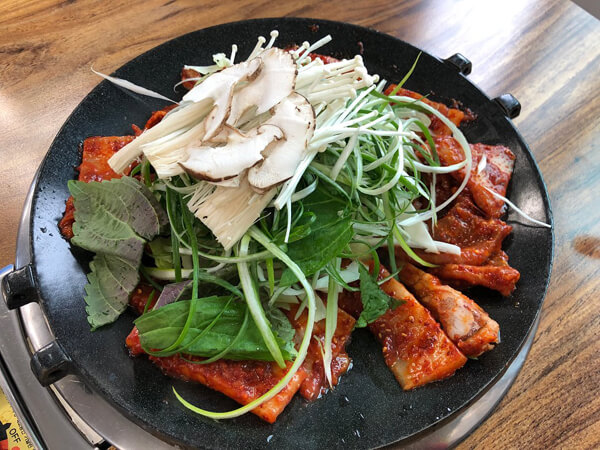 Á¦ÁÖ µ¿¹®½ÃÀå ¸ÀÁýÀ¸·Î ÇöÁöÀε鿡°Ô »ç¶û¹ÞÀº ¼ûÀº ¸ÀÁýÀÌ´Ù. ¸Ô°Å¸® °ñ¸ñ°ú´Â Á¶±Ý ¶³¾îÁ® ÀÖÁö¸¸, Á¦ÁÖµ¿¹®½ÃÀå 8¹ø °í°´Áö¿ø¼¾ÅÍ¿¡ À§Ä¡ÇØ ÀÖ¾î ½±°Ô ãÀ» ¼ö ÀÖ´Ù. ÀÌ ÁýÀÇ ´ëÇ¥ ¸Þ´º´Â °¥Ä¡Á¶¸². »ìÀÌ ÅëÅëÇÏ°Ô ¿À¸¥ °¥Ä¡ ¾Æ·¡·Î Àß ÀÍÀº ¹«°¡ °¡µæ µé¾îÀÖ´Ù. °¥Ä¡ ÇÑ Á¡À» ¶¼¾î Àß ÁöÀº ½Ò¹ä¿¡ À§¿¡ ¿Ã·Á ¸ÔÀ¸¸é ±×¾ß¸»·Î ²Ü¸À. Ç« ÀÍ¾î ¾ç³äÀÌ ÀÜ¶à º£ÀÎ ¹«´Â ºÎµå·´°í ´ÞÅÇÏ´Ï °¨Ä¥¸ÀÀÌ ÁÁ´Ù. ±¹¹°ÀÌ ÀÚÀÛÇÑ ½ºÅ¸ÀÏ·Î ¾ç³ä ±¹¹°¿¡ ¹äÀ» ºñº ¸ÔÀ¸¸é ÇÑ ±×¸© ¶ÒµüÀÌ´Ù. °ø±ê¹äÀº º°µµ·Î ÁÖ¹®ÇØ¾ß ÇÏÁö¸¸, Çö±Ý°áÁ¦ ½Ã ¹«ÇÑÀ¸·Î Á¦°øÇÑ´Ù. ÃÖ±Ù ¼ö¿ä¹Ì½Äȸ¿¡¼ ¼Ò°³µÈ ÀÌÈÄ·Î °ü±¤°´µéÀÌ Àå»çÁøÀ» ÀÌ·é´Ù°í ÇÑ´Ù.