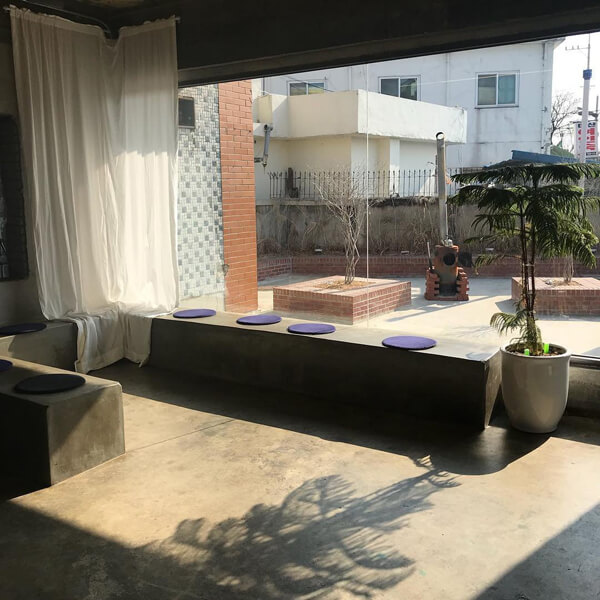 °Ç¹° Æ´ »çÀÌ¿¡ ¼û¾îÀÖ´Â ºñ¹Ð½º·¯¿î °ø°£ Ä«Æä 'Æ´'. ÀüºÏ ±º»êÀÇ ¸í¼Ò·Î ¶°¿À¸£°í ÀÖ´Â À̰÷Àº, ¾È ¾²´ø â°í¸¦ °³Á¶ÇØ ¸¸µç â°íÇü Ä«Æä´Ù. ºóƼÁöÇϸ鼵µ À̱¹ÀûÀÎ ´À³¦ÀÇ µ¶Æ¯ÇÑ ¿Ü°ü¿¡ ÀÔ±¸ºÎÅÍ ¿Ïº®ÇÑ Æ÷ÅäÁ¸À» ÀÌ·é´Ù. ¾ÈÀ¸·Î µé¾î°¡¸é 1Ãþ°ú 2ÃþÀ¸·Î ³ª´µ¾îÁ® Àִµ¥, ³ôÀº õÀå ´öºÐ¿¡ ¿©À¯·Î¿î ±âºÐÀ» ´À³¥ ¼ö ÀÖ´Ù. »ß°Æ°Å¸®´Â °è´Ü°ú ³ì½¼ º®, ¹þ°ÜÁø õÀå ±×¸®°í °¡°Ô °÷°÷¿¡ ³õÀÎ ºóƼÁöÇÑ ¼ÒǰµéÀº À̰÷¸¸ÀÇ ºÐÀ§±â¸¦ ¸¸µé¾î°£´Ù.