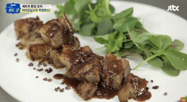 ¹«ÇÑȰ¿ëÀÌ °¡´ÉÇÑ Ä«Ä«¿À´Õ½º´Â µÅÁö°¥ºñ ¼Ò½º¿¡µµ Ȱ¿ëÇÒ ¼ö ÀÖ´Ù. JTBC 'À̽¿¬ÀÇ À§µåÀ¯'¶ó¸¦ ÇÁ·Î±×·¥¿¡¼ ¼Ò°³µÈ ÀÌ ·¹½ÃÇǴ īī¿À´Õ½º + Ä¿ÇÇ + °£ÀåÀ» ³Ö¾î °¥ºñ¼Ò½º¸¦ ¸¸µå´Â ¹æ¹ýÀ¸·Î ÀϹÝÀûÀ¸·Î ¾Ë·ÁÁø °¥ºñ ¼Ò½º¿¡ īī¿À´Õ½º¸¸ ³Ö¾îÁÖ¸é µÈ´Ù. ƯÈ÷ Áö¹æÁúÀÌ ¸¹Àº µÅÁö°í±â¸¦ ¼·ÃëÇÒ ¶§ Áß¼ºÁö¹æ ÃàÀûÀ» ³·ÃçÁִ īī¿À´Õ½º¿Í ÇÔ²² ¸ÔÀ¸¸é ´õ¿í ÁÁ´Ù.