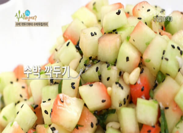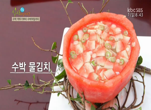 ¼ö¹Ú ²®ÁúÀ» ¶Ç ÇϳªÀÇ ¿ä¸®·Î ¼ö¹Ú ¹°±èÄ¡¸¦ ¸¸µé ¼ö ÀÖ´Ù. °Ñ²®ÁúÀ» ¹þ°Ü³½ ¼ö¹ÚÀÇ Èò ºÎºÐÀ» ¸Ô±â ÁÁÀº Å©±â·Î ³ª¹Ú ½ä±â ÇÑ´Ù. ½äÀº ¼ö¹ÚÀº ¼Ò±Ý¿¡ ÀýÀ̰í, ¹èÃß, ¹Ì³ª¸®, °íÃß µî ¹°±èÄ¡¿¡ °°ÀÌ ³ÖÀ» Àç·áµéµµ ¼ö¹Ú°ú µ¿ÀÏÇÑ »çÀÌÁî·Î ½ä¾î ÁغñÇÑ´Ù. ¹èÃß´Â ¼ö¹Ú°ú ÇÔ²² ¼Ò±Ý¿¡ ÀýÀδÙ. ÀýÀÌ´Â µ¿¾È ¼ö¹Ú °úÀ°À¸·Î ÁóÀ» ¸¸µé¾î ÁغñÇÑ´Ù. ¿©±â¿¡ ·¹¸óÁó, »ý°ÁóÀ» ³Ö¾î ¹°±èÄ¡ ±¹¹° ¸ÀÀ» ³½´Ù. ±×¸©¿¡ ÁغñµÈ Àç·á¸¦ ´ã°í ¼ö¹Ú ±¹¹°À» ´ã¾Æ ³»¸é ¿Ï¼º. ½Ã¿øÇÏ°í »óÅÇÑ ¹°±èÄ¡¿¡ ¼ö¹ÚÀÇ ´ÞÄÞÇÔÀÌ ´õÇØÁ® ´õ¿í ¸ÀÀÖ°Ô Áñ±æ ¼ö ÀÖ´Ù.