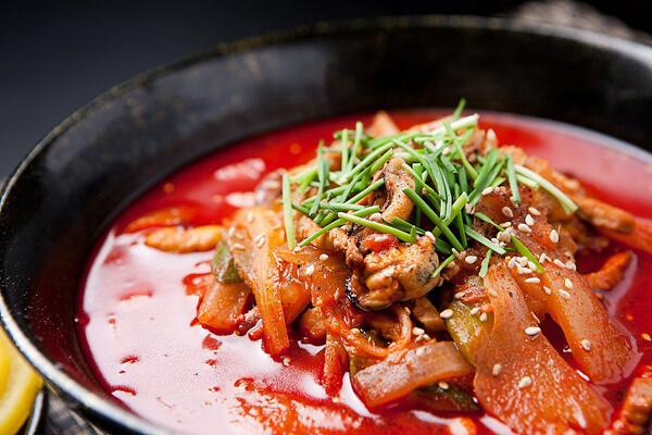 Á¶±Ý Àú·ÅÇÑ °¡°Ý¿¡ ¸Å¿î¸ÀÀ» Áñ±â°í ½Í´Ù¸é ¸Å¿î ¾î¹¬À» ÃßõÇÑ´Ù. °íÃßÀåÀ» Ç®¾î ¸ÅÄÞÇÏ°Ô ²úÀÎ ¾î¹¬ ±¹¹°¿¡ ¾î¹¬À» ÀÍÈ÷°í, ±× À§¿¡ ¸Å¿î ¾ç³ä ¼Ò½º±îÁö »Ñ¸®¸é ¸Å¿î ¾î¹¬ÀÌ ¿Ï¼ºµÈ´Ù. óÀ½¿¡´Â Àû´çÇÑ ¸Å¿î¸À¿¡ °è¼Ó ¸Ô°Ô µÇ´Âµ¥ ±× µÚ¿¡´Â ¾öû³ ÈÄÆøÇ³ÀÌ µû¶ó¿ÃÁöµµ ¸ð¸¥´Ù. ÇϳªÀÇ ÆÁÀ¸·Î, À§¿¡ ¼Û¼Û ½äÀº ´ëÆÄ¿Í ¾Æ»èÇÑ Äᳪ¹°±îÁö °çµé¿© ¸ÔÀ¸¸é ´õ¿í ¸ÀÀÖ°Ô Áñ±æ ¼ö ÀÖ´Ù.