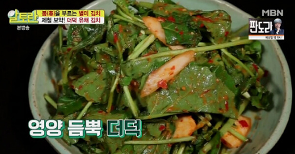»óÅÇÑ À¯Ã¤³ª¹°°ú ´õ´öÀ» ÇÔ²² ¹ö¹«¸° º°¹Ì ±èÄ¡ ¡®´õ´ö À¯Ã¤ ±èÄ¡¡¯. ¸ÕÀú ¹° 1ÄŰú ¹Ð°¡·ç 3Å«¼úÀ» ³Ö°í °í·ç ¼¯¾îÁØ´Ù. ²ú´Â ¹°¿¡ ¼¯¾îÁØ Ç®À» ³Ö¾î °ÉÂßÇØÁú ¶§±îÁö Àú¾îÁØ´Ù. ±ú²ýÀÌ ¼ÕÁúÇÑ À¯Ã¤´Â ¸Ô±â ÁÁÀº Å©±â·Î Àß¶ó ÁغñÇÑ´Ù. ÂÊÆÄ´Â ºñ½ÁÇÑ Å©±â·Î ½ä¾î ÁØ´Ù. ²®ÁúÀ» ¹þ±ä ´õ´öÀº ¾ã°Ô ¾î½Á ½ä¾îÁØ´Ù. ¹Í¼±â¿¡ °Ç°íÃß 7~8°³, ¹è 1/4°³, ¾çÆÄ 1/2°³, »ý° 1/4°³, »õ¿ìÁ£ 4Å«¼ú, °íÃå°¡·ç 2ÄÅ, Ç®±¹À» ³Ö°í °¥¾ÆÁØ´Ù. ¾î´À Á¤µµ °¥¸®¸é Å븶´Ã 5~6°³¸¦ ³Ö°í ´Ù½Ã °¥¾ÆÁØ´Ù. ³²Àº Ç®±¹°ú ¾ç³äÀ» ¼¯Àº ÈÄ ¼Ò±Ý°ú ¸êÄ¡À°¼ö 1ÄÅÀ» ³Ö°í °í·ç ¼¯¾îÁØ´Ù. ¸¸µç ¾ç³äÀå°ú ¼ÕÁúÇÑ Ã¤¼Ò ±×¸®°í ´õ´öÀ» ¼¯¾î ¹ö¹«·Á ³½´Ù. »ì¦ ¼ûÀÌ Á×À¸¸é Åë±ú¿Í Âü±â¸§À» »Ñ·Á ¸¶¹«¸®ÇÑ´Ù.