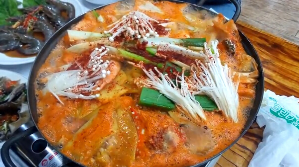 Çѹø ¸Ô¾îº¸¸é °è¼Ó »ý°¢ÀÌ ³´Ù´Â ²É°Ô ¿ä¸®µµ ÀÖ´Ù. ¹Ù·Î °Ô±¹ÁöÀε¥, °Ô±¹Áö´Â ÃæÃ»³²µµ ¼»ê°ú ÅÂÀÎ ÀÏ´ëÀÇ Åä¹ÚÀÌ À½½ÄÀ¸·Î, ±èÀåöÀÌ Áö³ª¸é ¹ä»ó À§¿¡ Âî°³ ´ë½Å ¿Ã¸®´ø À½½ÄÀÌ´Ù. °ÔÀåÀ» ÇÑ ÈÄ ³²Àº ±¹¹°À» º¸°üÇØ µÎ¾ú´Ù°¡ °Ô¿Í °¢Á¾ ä¼Ò, ±èÄ¡¸¦ ³Ö¾î ¼÷¼º½ÃŰ´Â ¿ä¸®·Î, ²É°ÔÅÁ°ú´Â ¶Ç ´Ù¸¥ ½Ã¿øÇÑ ¸ÀÀÌ ÀÏǰÀÌ´Ù.