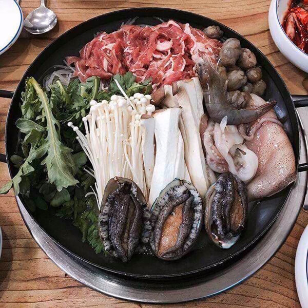 ¿©¼ö¿¡ ¿Í¼µµ °í±â¸¦ Æ÷±âÇÒ ¼ö ¾ø´Ù¸é ÇØ»ê¹°°ú °í±â¸¦ Çѹø¿¡ ¸ÔÀ» ¼ö ÀÖ´Â ¿À¼ºÈ¸°üÀ» ÃßõÇÑ´Ù. ¼Ò°í±â¿Í Àüº¹, ³«Áö, »õ¿ì µî ÇØ»ê¹°ÀÌ µë»Ò µé¾î°¡´Â ¾ßäºÒ°í±â´Â °í±âÀÇ À°Áó°ú ÇØ»ê¹°¿¡¼ ¿ì·¯³ª¿Â ½Ã¿øÇÑ ±¹¹°ÀÌ Äݶ󺸰¡ ÀÏǰÀÌ´Ù. ¿©±â¿¡ »ì¾ÆÀÖ´Â Àüº¹Àº »ì¦ µ¥ÃÄ ²¿µé²¿µéÇÑ ½Ä°¨À» ÀÚ¶ûÇÑ´Ù. ±âº»À¸·Î °£Àå°ÔÀå, ¾ç³ä°ÔÀå, °«±èÄ¡ ±×¸®°í Äá°ú ´ÜÈ£¹ÚÀÌ µë»Ò µé¾î°£ ¿µ¾ç µ¹¼Ü¹ä±îÁö µçµçÇÏ°Ô ¸ÔÀ» ¼ö ÀÖ´Ù.