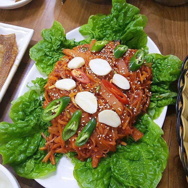 ´Ù¾çÇÑ ÇØ»ê¹°ÀÌ Ç³ºÎÇÑ ¿©¼ö¿¡¼´Â °¹¹ú¿¡¼ ÀâÀº ½Ì½ÌÇÑ ¹Ù´åÀå¾î±¸À̸¦ ¸Àº¼ ¼ö ÀÖ´Ù. »ê°ñ½Ä´çÀº ÁÖ¹®°ú Áï½Ã Àâ¾Æ¼ Á¦°øÇϹǷΠ»ì¾Æ ¼û ½¬´Â Àå¾î¸¦ º¼ ¼ö ÀÖ´Ù. Á¾·ù´Â ¼Ò±Ý±¸ÀÌ, ¾ç³ä±¸ÀÌ µÎ Á¾·ù·Î ½Ä»ç ÁÖ¹®½Ã Àå¾îÅÁÀÌ °°ÀÌ ³ª¿Â´Ù. ¹Ø¹ÝÂùÀ¸·Î ¿©¼ö °«±èÄ¡¿Í µ¶Æ¯ÇÏ°Ô ¿©¼ö °« ¹°±èÄ¡°¡ Á¦°øµÇ¸ç, ¸¶¸¥ Àå¾îÁ¶¸², °£Àå°ÔÀåÀÇ ¸Àµµ ÈǸ¢ÇÏ´Ù. ƯÈ÷ ½Ä»ç¿¡ ³ª¿À´Â Àå¾îÅÁÀº ¾Æ»èÇÑ ¼÷ÁÖ¿Í Àå¾î»ìÀÌ µé¾î°¡ ½Ã¿øÇϰí ĮĮÇÑ ±¹¹°¸À¿¡ Àå¾îÅÁ¸¸ µû·Î ÁÖ¹®ÇÒ Á¤µµ·Î ¸¹ÀÌ Ã£´Â ¸Þ´º´Ù.