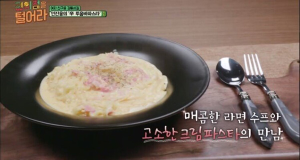 tvN 'È¥¼ú³²³à'¿¡ °ø°¨ °¡´Â ¿¬±â·Î Å« »ç¶ûÀ» ¹ÞÀº ¹è¿ì '¹ÎÁø¿õ'ÀÌ ¼Ò°³ÇÑ ·¹½ÃÇÇ '½ÅÅõ¿ò¹ÙÆÄ½ºÅ¸'. Åõ¿ò¹ÙÆÄ½ºÅ¸´Â '¾Æ¿ô¹é'ÀÇ ÀÎ±â ÆÄ½ºÅ¸ ¸Þ´º·Î ¿©±â¿¡ »ì¦ ¸ÅÄÞÇÔÀ» ´õÇÑ °ÍÀÌ ½ÅÅõ¿ò¹ÙÆÄ½ºÅ¸´Ù. ¸Õ°Å ±â¸§À» µÎ¸¥ ÇÁ¶óÀÌÆÒ¿¡ ´ÙÁø ¸¶´Ã, ¹öÅ͸¦ ³Ö°í ºº´Â´Ù. ¸¶´ÃÀÌ ³ë¸©ÇØÁö¸é ä ½ã ¾çÆÄ¿Í º£ÀÌÄÁÀ» ³Ö°í ºº´Â´Ù. ¶ó¸éÀº ÀÏ¸í »Ç±ÛÀÌ ¶ó¸éó·³ ºÀÁö° ¹°À» ºÎ¾î ÀÍÈù´Ù. ¾çÆÄ°¡ Åõ¸íÇØÁö¸é ¿ìÀ¯ 1ÄŰú ü´õÄ¡Áî 3ÀåÀ» ³Ö°í Àú¾îÁØ µÚ, ½Å¶ó¸é ¼öÇÁ 1½ºÇ¬À» ³Ö°í Àß ¼¯¾îÁØ´Ù. °í¼ÒÇÑ Å©¸²°ú ½Å¶ó¸éÀÌ ¸¸³ª ´À³¢ÇÔÀº Àâ¾ÆÁÖ°í ¸ÅÄÞÇÑ ¸ÀÀº »ì·Á Àͼ÷Çϸ鼵µ µ¶Æ¯ÇÏ´Ù.