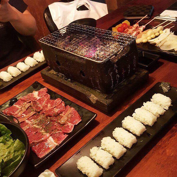 ÀϺ»½Ä ¾ßŰ´ÏÄí¿¡ ÇѽÄÀ» Á¢¸ñÇÑ Ç»Àü À½½ÄÁ¡À¸·Î ¹Ì´Ï ȷο¡ Á÷Á¢ ±¸¿ö ¸Ô´Â ¼Ò°í±â ºÒ ÃʹäÀ¸·Î À¯¸íÇÏ´Ù. ÁغñµÈ ȷο¡ °í±â¸¦ »ì¦ ±¸¿ö Ãʹä À§¿¡ ¾ñ¾î ¸Ô´Â µ¶Æ¯ÇÑ ÄܼÁÆ®·Î »ö´Ù¸¥ Áñ°Å¿òÀ» ÁØ´Ù. ¿©´À À½½ÄÁ¡°ú ´Þ¸® Å×ÀÌºí¸¶´Ù ³ôÀº ĸ·À̰¡ ÀÖ¾î Æí¾ÈÇÏ°í ¿©À¯·Î¿î ½Ä»ç¸¦ Áñ±æ ¼ö ÀÖ´Â Á¡µµ ÁÁ´Ù. Çѳ¢¾ß³¢ ¼¼Æ®¸¦ ÁÖ¹®Çϸé Ãʹä 8pcs, À°¸é, °ÑÀýÀÌ, ¼÷ÁÖ, ¾ß³¢¸ðµÒ, ¹Ì´Ïµ·ºÎ¸®, °í±â, ½½¶óÀ̽º °¨ÀÚ, ²¿Ä¡ µîÀÌ Á¦°øµÈ´Ù.