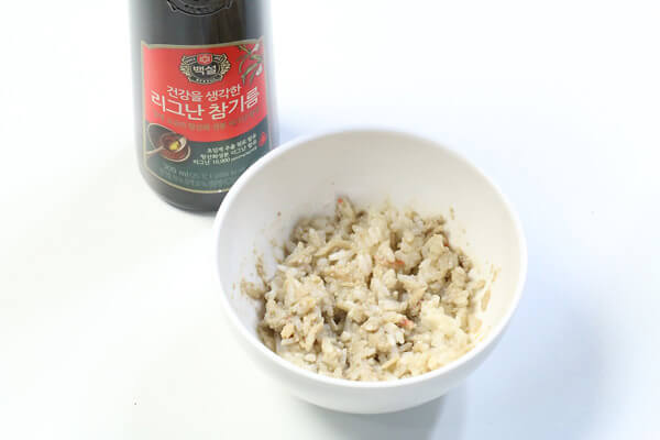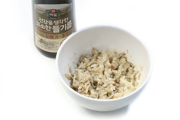 ¹ä¿¡ Àû´ç·®ÀÇ ´ë°ÔµüÁöÀåÀ» ³Ö¾î ºñºó ÈÄ, µé±â¸§À» µÎ ¹æ¿ï Á¤µµ ³Ö¾ú´Ù. °í¼ÒÇÑ µé±â¸§ ³¿»õ°¡ ´ë°ÔµüÁöÀå°ú ¾î¿ì·¯Á® °í¼ÒÇÏ´Ù.