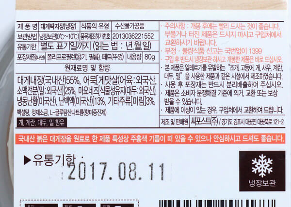 ¿øÀç·á ¹× ÇÔ·®À» »ìÆìºÃ´Ù. ±¹³»»ê ´ë°Ô ³»Àå 55%, °Ô¸À»ì ¾î¹¬ 25%, ¸¶¿ä³×Áî µîÀ¸·Î ÀÌ·ç¾îÁ³´Ù. ´ë°Ô ³»Àå ÇÔ·®ÀÌ »ý°¢º¸´Ù ³ô´Ù. À¯Åë±âÇÑÀº ´ëºÎºÐ ±¸¸Å ³¯Â¥·ÎºÎÅÍ 8~9ÀÏ Á¤µµ´Ù. ¿©À¯°¡ ÀÖ´Â ÆíÀÌÁö¸¸, ÇØ»ê¹°ÀÌ´Ï »¡¸® ¸Ô´Â °ÍÀÌ ÁÁ´Ù. Èı⿡ µû¸£¸é À¯Åë±âÇÑÀÌ ´Ù°¡¿Ã¼ö·Ï ºñ¸° ¸ÀÀÌ ´õ °ÇÏ´Ù°í ÇÑ´Ù.