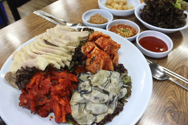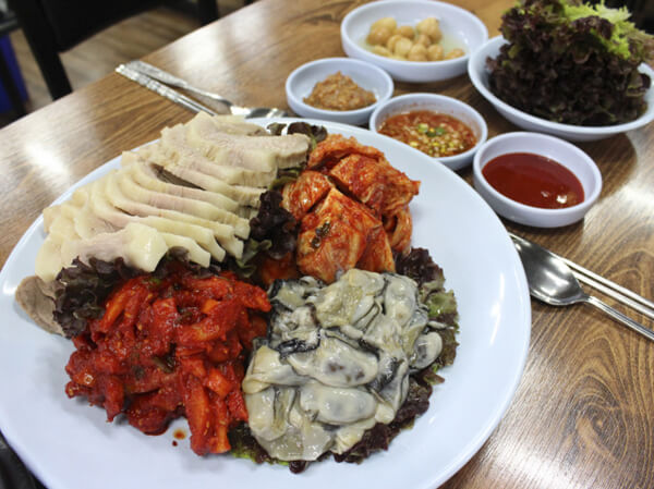 ±Ý³²½ÃÀå °ñ¸ñ¿¡ ÀÖ´Â ¿À·¡µÈ º¸½Ó¸ÀÁý. ¿ø·¡ ÀÖ´ø ÀÚ¸®¿¡¼ 10¿© ³â Àü ±Ý³²½ÃÀå ¾ÈÀ¸·Î ÀÌÀüÇÑ Àº¼ºº¸½ÓÀº ±ÝÈ£µ¿ ÀÏ´ë¿¡¼ °¡Àå À¯¸íÇÑ º¸½ÓÁýÀÌ´Ù. À̰÷ÀÇ º¸½ÓÀº '»ï°ã º¸½Ó'°ú 'Àº¼º º¸½Ó' 2°¡Áö Áß ¼±ÅÃÇÒ ¼ö ÀÖ´Ù. »ï°ã º¸½ÓÀº ºÎµéºÎµéÇÑ »ï°ã¸¸ ³ª¿À°í, Àº¼º º¸½ÓÀº »ï°ã°ú »ìÄڱⰡ ¼¯¿© ³ª¿Â´Ù. Àº¼º º¸½ÓÀº º¸½Ó±èÄ¡°¡ È·ÁÇѵ¥ ¹è, ¹ã, Àã, ¿ÏµÎÄá, È£µÎ µî 12°¡Áö °ß°ú·ù¸¦ ±èÄ¡ ¼Ó Àç·á·Î ³Ö¾î °Ç°¿¡µµ ÁÁ°í, ¾çµµ ³Ë³ËÇÏ´Ï ÇªÁüÇÏ´Ù. ¿©±â¿¡ ½Å¼±ÇÑ »ý±¼µµ ÇÔ²² ¹«ÃÄ ³ª¿Â´Ù. Àº¼º º¸½ÓÀ» ¸ÀÀÖ°Ô ¸ÔÀ¸·Á¸é ¹ä¿¡ ±èÄ¡¼Ò¸¦ ³Ö°í ºñºó ÈÄ, ±× À§¿¡ µÅÁö ¼öÀ°°ú »ý±¼À» ¿Ã·Á ¸ÔÀ¸¸é µÈ´Ù. ±×¾ß¸»·Î ²Ü¸À!