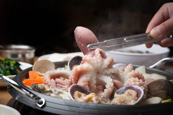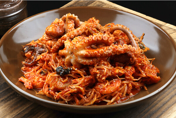 ¿¬Æ÷ÅÁÀº ³«Áö¿Í °¢Á¾ ä¼Ò¸¦ ³Ö¾î ²ú¿© ¸Ô´Â À½½ÄÀ¸·Î, Â̱êÇÑ ³«ÁöÀÇ ½Ä°¨°ú ´Þ´ÞÇϸ鼵µ ±ò²ûÇÏ´Ï ½Ã¿øÇÑ ±¹¹°¸ÀÀÌ ÀÏǰÀÌ´Ù. ¸ÕÀú ³«Áö´Â ³»Àå°ú ÀÔÀ» Á¦°ÅÇÏ°í ¹Ð°¡·ç¿Í ±½Àº ¼Ò±ÝÀ» ¹Ú¹Ú ¹®Áú·¯ ¾Ä¾î³½´Ù. ¹«´Â Àû´çÇÑ µÎ²²·Î ³ª¹Ú ½ã´Ù. ´ëÆÄ¿Í û¾ç°íÃß´Â ¾î½ÁÇÏ°Ô ½ä°í, ¹Ì³ª¸®´Â ¼Õ°¡¶ô ±½±â¸¸Å ½ä¾î ÁغñÇÑ´Ù. ³¿ºñ¿¡ ¹°À» º×°í ¸êÄ¡ 4°³, ´Ù½Ã¸¶ 2°³, ¹«¸¦ ³Ö¾î 5ºÐ°£ ²úÀδÙ. ¹«°¡ Åõ¸íÇØÁö¸é ¸êÄ¡¿Í ´Ù½Ã¸¶¸¦ °ÇÁ®³»°í ´ÙÁø ¸¶´Ã, ±¹°£ÀåÀ» ³Ö¾î ²úÀδÙ. ÁغñÇÑ Ã¤¼Ò¿Í ³«Áö¸¦ ³Ö°í ÇѼҲû ²úÀδÙ. ºÎÁ·ÇÑ °£Àº ¼Ò±ÝÀ¸·Î ¸¶¹«¸®ÇÑ´Ù. ³«Áö´Â Â̱êÇÑ ½Ä°¨À» À§ÇØ 2~3ºÐ Á¤µµ¸¸ ÀÍÈ÷´Â °ÍÀÌ ÁÁ´Ù.