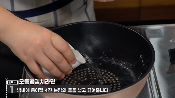 °¡Àå ¸ÕÀú Á¾ÀÌÄÅ 4ÀÜ ºÐ·®ÀÇ ¹°À» ³Ö¾îÁØ´Ù. ÀÏ¹Ý ¶ó¸éº¸´Ù ´Ù¸¥ Àç·á°¡ ´õ ¸¹ÀÌ µé¾î°¡±â ¶§¹®¿¡ º¸Åë ¶ó¸éÀ» ²úÀÏ ¶§ º¸´Ù ¹°À» ´õ ³Ö¾îÁÙ Çʿ䰡 ÀÖ´Ù.