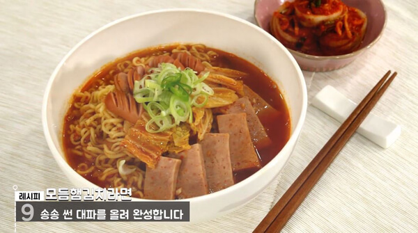 ºÎ´ëÂî°³´Â Çܰú ¼Ò½ÃÁö, ±èÄ¡, ¶±, ¶ó¸é µîÀÌ µé¾î°£ ¿ä¸®·Î, Çѱ¹ÀÎÀ̶ó¸é ´©±¸³ª ÇÑ ¹øÂëÀº ¸Ô¾îºÃÀ» ¹ýÇÑ À½½ÄÀÌ´Ù. ºÎ´ëÂî°³ ¸ÀÀÇ ÇÙ½ÉÀº ´Ù¾çÇÑ Àç·áµéÀÇ Á¶È·Î ÀÌ·ç¾îÁø´Ù. ¸ÀÀÖ´Â ºÎ´ëÂî°³ ½Ä´çÀ» °¡¸é ¸¶Áö¸· ±¹¹° ÇÑ ¹æ¿ïÀÌ Á¦ÀÏ ¸ÀÀÖ´Ù. ÀÌ·± ºÎ´ëÂî°³¸¦ Áý¿¡¼µµ ¸¸µé¾î ¸ÔÀ» ¼ö ÀÖ´Ù¸é ¾ó¸¶³ª ÁÁÀ»±î. ±×·¡¼ Áö±Ý, Á¤½Ä ºÎ´ëÂî°³¸¸ÅÀº ¾Æ´ÏÁö¸¸ ÀÌ¿¡ ¹ö±Ý°¡´Â ¸ðµëÇܱèÄ¡¶ó¸é ·¹½ÃÇǸ¦ °ø°³ÇÏ·Á ÇÑ´Ù. Á¶¸® ½Ã°£ ¾à 5ºÐ¿¡ °ÉÄ£ Ãʰ£´Ü ¿ä¸®, ¸ðµëÇܱèÄ¡¶ó¸éÀ» ´Ù ÇÔ²² ¸¸µé¾îº¸ÀÚ!