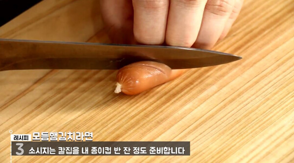 ¼Ò½ÃÁö¿¡ ¾à°£ÀÇ Ä®ÁýÀ» ³Ö¾îÁØ´Ù. ¼Ò½ÃÁöµµ ±èÄ¡¿Í ¸¶Âù°¡Áö·Î Á¾ÀÌÄÅ ¹Ý ÀÜ ºÐ·®À¸·Î ÁغñÇÑ´Ù.