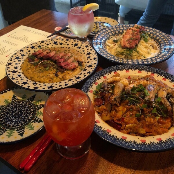 ºü¿¡¾ß°¡ ƯÈ÷ ¸ÀÀÖÀ¸¸ç °¨¹Ù½º¿Í ŸÆÄ½º µî ´Ù¾çÇÑ ½ºÆäÀÎ ¿ä¸®¸¦ Àü¹®À¸·Î ÇÏ´Â ½Ä´çÀÌ´Ù. ºÓµðºÓÀº »ö±òÀÇ º®À¸·Î ÀÌ·ïÁø °¡°Ô ³»ºÎ´Â ½ºÆäÀο¡ ¿Â µíÇÑ À̱¹ÀûÀÎ ºÐÀ§±â¸¦ ¿¬ÃâÇÑ´Ù. ¶ø½ºÅÍ¿Í °Ô»ì·Î ¼ÓÀ» ä¿î ¼¾ç½Ä ¸¸µÎÀÎ ¶óºñ¿Ã¸®¿¡ ·ÎÁ¦ ¼Ò½º¸¦ ´õÇÑ ¶ø½ºÅÍ ¶óºñ¿Ã¸®´Â ÁøÇÏÁö¸¸ ºÎµå·¯¿î ·ÎÁ¦¼Ò½º°¡ ÆÄ½ºÅ¸ »çÀÌ»çÀÌ¿¡ Àß ½º¸çµé¾î ÀÖ´Ù. ¹Ð°¡·ç ¸é¸¸ ÀÖ´Â °ÍÀÌ ¾Æ´Ï¶ó ÇØ»ê¹°·Î ¼ÓÀÌ Ã¤¿öÁ® ÀÖ¾î ´õ¿í µçµçÇÏ´Ù. µðÀúÆ®·Î´Â ½ºÆäÀνÄÀÇ ´ÞÄÞÇÑ Ä¿½ºÅ͵å Å©¸²ÀÎ ÇöõÀÌ ÀÖ´Ù.