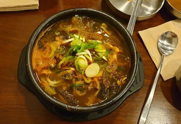 Ä¿´Ù¶õ ¼±Áö¿Í »À°¡ µé¾î°£ »ÀÀü°ñ°ú ÇØÀå±¹ÀÌ ´ëÇ¥ ¸Þ´ºÀÎ ½Ä´çÀÌ´Ù. »ç°ñ ±¹¹°¿¡ µÈÀå°ú °¢Á¾ ä¼Ò¸¦ ³Ö¾î ¸ÀÀ» ³½ ÇØÀå±¹¿¡´Â ¼±Áö°¡ ¾ÆÁÖ ÇªÁüÇÏ°Ô µé¾î°¡ ÀÖÀ¸¸ç ¹èÃß °Ç´õ±âµµ °¡µæÇÏ´Ù. ±¸¼öÇÑ ±¹¹°À» ±×´ë·Î Áñ°Üµµ ÁÁÀ¸¸ç Â¥Áö ¾ÊÀº ¾ç³äÀ» ¼¯¾î ¸ÔÀ¸¸é ÇÑÃþ ´õ ±íÀº ¸ÀÀ» ´À³¥ ¼ö ÀÖ´Ù. ÇØÀå±¹°ú ¸¶Âù°¡Áö·Î ¼±Áö¿Í ¹èÃß°¡ ÇѰ¡µæ µé¾î ÀÖ´Â »ÀÀü°ñÀº »ìÄڱⰡ ºÙ¾î ÀÖ´Â ÅÁö¸·ÇÑ »Àµµ ÇÔ²² µé¾î°¡ ÀÖ¾î ´õ¿í ǪÁüÇÏ°Ô Áñ±æ ¼ö ÀÖ´Ù.
