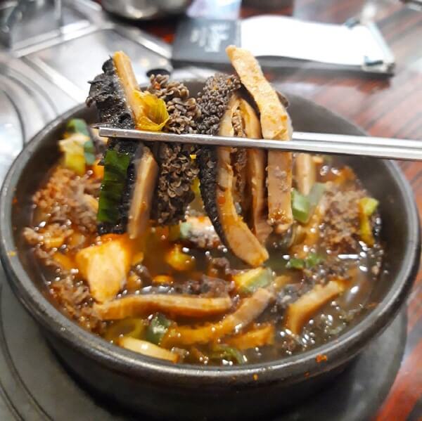 ¼±ÁöÇØÀå±¹°ú °öâÀü°ñÀÌ ¸ÀÀÖ±â·Î À¯¸íÇÑ ÇØÀå±¹ ¸ÀÁýÀ¸·Î ³»ÀåÅÁ, ¾çÁö°õÅÁ, ¿ìÁ·ÅÁ, ¾çÁö¼öÀ° µîÀ» Æ÷ÇÔÇØ ¸ðµç ¸Þ´º¿¡´Â ±¹³»»ê Çѿ츦 »ç¿ëÇÑ´Ù°í ÇÑ´Ù. ³»ÀåÅÁÀº »Ç¾á ±¹¹°¿¡ ³»ÀåÀÌ µë»Ò µé¾î ÀÖÀ¸¸ç ¾ç³äÀº Å×ÀÌºí¿¡ ³õ¿© ÀÖ´Â °ÍÀ» ¿øÇÏ´Â ¸¸Å ³Ö¾î ¸ÔÀ¸¸é µÈ´Ù. ¼ÒÀÇ Ã¹ ¹øÂ° À§¸¦ ¸»ÇÏ´Â ¾ç°ú ¼±Áö°¡ ǪÁüÇÏ°Ô µé¾îÀÖ´Â ¼±ÁöÇØÀå±¹Àº ¼±ÁöÀÇ ½Ä°¨ÀÌ °ÅÄ¥Áö ¾Ê°í ºÎµå·¯¿ö ¸Ô±â°¡ ÁÁÀ¸¸ç ½Ã·¡±â¿Í Äᳪ¹°µµ °¡µæÇÏ´Ù. Àß ÀÍÀº ±ïµÎ±â ¶ÇÇÑ ±¹¹ä°ú ¾î¿ï¸®´Â ȯ»óÀÇ Á¶ÇÕÀÌ´Ù.