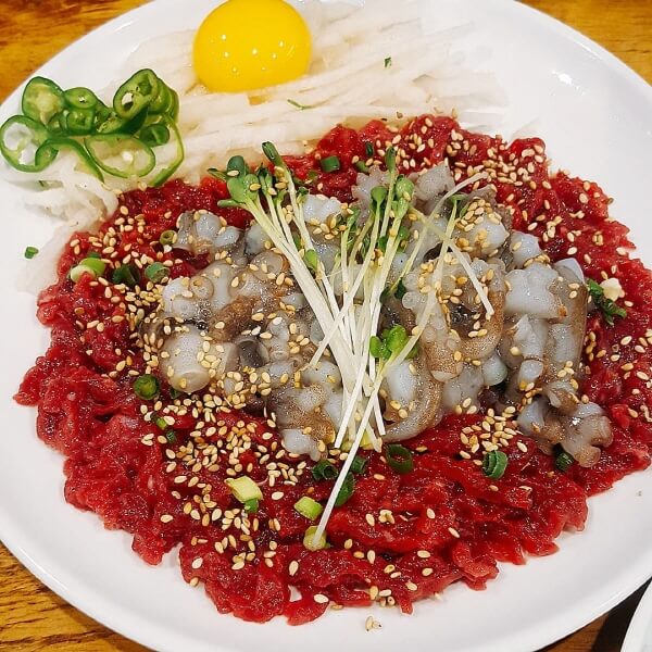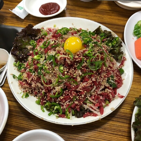 À°È¸µ¤¹ä°ú À°È¸°¡ ¸ÀÀÖ´Â ±¤Àå½ÃÀå ¸ÀÁýÀÌ´Ù. À°È¸¿Í »ê³«Áö, À°È¸ÅÁÅÁÀÌ, À°»ç½Ã¹Ì, À°È¸µ¤¹ä, À°°ñ¹ðÀÌ µîÀÇ ¸Þ´º°¡ ÀÖÀ¸¸ç ±âº» ÂùÀ¸·Î ¼Ò°í±â ¹«±¹ÀÌ Á¦°øµÈ´Ù. º°´Ù¸¥ ¾ç³äÀÌ µé¾î°¡ ÀÖÁö ¾ÊÁö¸¸ ¹èÀÇ ½Ã¿øÇÑ ¸À°ú ³ë¸¥ÀÚ°¡ ´õÇØÁ® °í¼ÒÇÑ À°È¸´Â ¾Ã´Â ¸ÀÀÌ ÁÁ´Ù. ǪÁüÇÑ À°È¸ À§¿¡ ½Ì½ÌÇÑ »ê³«Áö°¡ ¿Ã¶ó°£ À°ÅÁÀÌ´Â ½Ä°¨ÀÌ ÁÁ°í °í¼ÒÇÑ ¸ÀÀÌ °ÇÏ´Ù. À°È¸¿Í ÇÔ²² ¿ÀÀÌ¿Í ²¢ÀÙ µîÀÌ µé¾î°£ À°È¸µ¤¹ä ¶ÇÇÑ ¾ç³äÀÌ ±ò²ûÇÏ°í °¨Ä¥¸À ÀÖ¾î À°È¸¿Í ÇÔ²² Àα⠸޴º·Î ¼Õ²ÅÈù´Ù.
