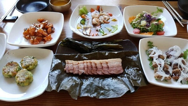 »çÂû ¾à¼±¿ä¸®¸¦ Àü¹®À¸·Î ÇÏ´Â ½Ä´çÀ¸·Î Á¤°¥ÇÑ À½½ÄµéÀ» ÇÑ »óÀ¸·Î ¸Àº¼ ¼ö ÀÖ´Â ¿©·¯ °¡Áö Á¤½ÄµéÀÌ ÁغñµÅ ÀÖ´Ù. °¡°Ý´ëº°·Î ¿¬ÀÙÁ¤½ÄºÎÅÍ ¾à¼±Á¤½Ä°ú Áø¹ÌÁ¤½Ä ¼ö¶óÁ¤½Ä±îÁö ÃÑ ³× °¡Áö·Î ±¸¼ºµÅ ÀÖ´Ù. °¢Á¾ »ø·¯µå¿Í ³ª¹°, ¹¬, Àü, °¡Áö ¿ä¸®, °í±â, »ý¼±, µÈÀåÂî°³, Á×, ¿¬ÀÙ¹ä µîÀÌ Æ÷ÇԵŠÀÖ´Â Á¤½ÄÀº ±ò²ûÇÏ°í °Ç°ÇÑ ¸ÀÀ¸·Î °£ÀÌ °úÇÏÁö ¾Ê°í ´ã¹éÇÏ´Ù. °¡°Ô ³»ºÎµµ ±º´õ´õ±â ¾øÀÌ ½ÉÇÃÇÏ°í ±ú²ýÇØ ¿©À¯·Î¿î ½Ä»ç¸¦ Áñ±â±â ÁÁÀº °ø°£À¸·Î ÇѽÄÀ» ÁÁ¾ÆÇÑ´Ù¸é ´õ¿í °¡ º¼ ¸¸ÇÑ °÷ÀÌ´Ù.