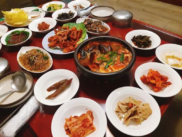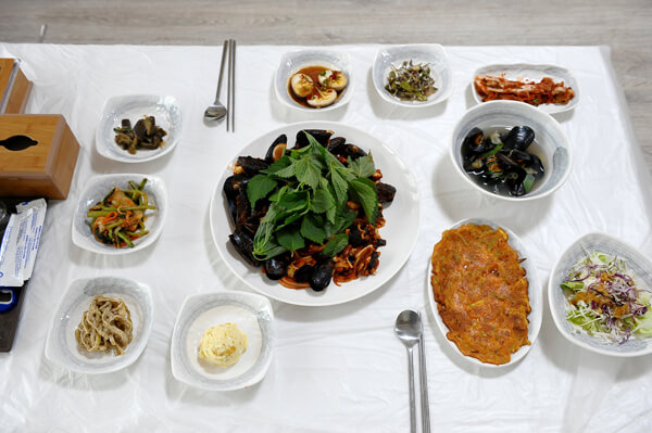 Àü¶óµµ ¹é¹ÝÀÇ ¹¦¹Ì¸¦ ´À³¥ ¼ö ÀÖ´Â ÇÑÁ¤½Ä Àü¹®Á¡À¸·Î ¹ÝÂùÀÇ ±¸¼ºÀÌ ¾ËÂ÷¸ç °¡°Ý ¶ÇÇÑ Àú·ÅÇÑ °÷ÀÌ´Ù. º¸Åë ÇÑÁ¤½ÄÁý¿¡¼´Â Âî°³ Á¾·ù·Î µÈÀåÂî°³°¡ °¡Àå ÈçÇÏ°Ô Á¦°øµÇÁö¸¸ À̰÷¿¡¼´Â È«ÇÕ°ú ²É°Ô, »õ¿ì µîÀÇ ÇØ¹°ÀÌ µé¾î°£ ¾óÅ«ÇÑ ÇØ¹°ÅÁ °°Àº Âî°³°¡ ³ª¿Â´Ù. ÀâäºÎÅÍ Á¦À°ººÀ½°ú ½Óä¼Ò, »ý¼±±¸ÀÌ µîÀ» ºñ·ÔÇØ °¢Á¾ À徯Âî¿Í ±èÄ¡°¡ Æ÷ÇԵŠÀÖ´Â ¹é¹ÝÀº ±ò²ûÇÑ ÇÑ ³¢¸¦ Áñ±â±â¿¡ ¼Õ»öÀÌ ¾ø´Ù. È·ÁÇÑ ÇÑÁ¤½Ä¿¡ ºñÇØ ºÎ´ã ¾ø´Â °¡°Ý°ú ±¸¼ºÀ̸ç Áý¹äó·³ Æí¾ÈÇÑ ½Ä»ç¸¦ ÇÒ ¼ö ÀÖ´Ù.