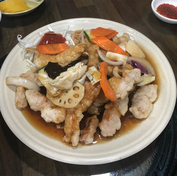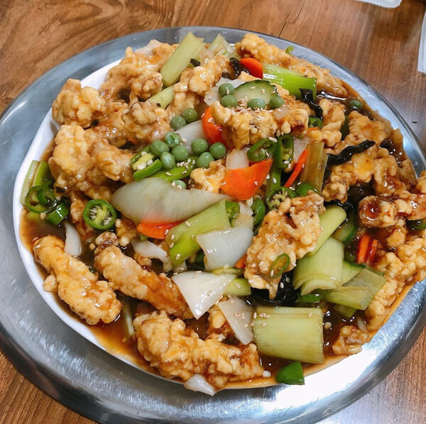 Æò¹üÇÑ µ¿³× Áß±¹Áý °°Àº ºÐÀ§±âÀÇ °¡°Ô·Î ³»ºÎ ¶ÇÇÑ ¾Æ´ãÇϸ鼵µ ¾à°£ÀÇ ¼¼¿ùÀÇ ÈçÀûÀÌ ´À²¸Áø´Ù. °£Â¥Àå°ú «»Í, Â¥Àå¸é, »çõ¥Àå°ú ¿ï¸é, Àâä¹ä µîÀÇ ±âº» ½Ä»ç ¸Þ´º¿¡ ³Ã¸é°ú ¹Ð¸éµµ ÀÖÀ¸¸ç ¿ä¸® Á¾·ùµµ ½º¹« °¡Áö °¡±îÀÌ ¸¶·ÃµÅ ÀÖ´Ù. ±âº»¿¡ Ãæ½ÇÇÑ À̰÷ÀÇ ÅÁ¼öÀ°Àº ÅëÀ¸·Î ½ä¸° ¾çÆÄ¿Í ¿ÀÀÌ µîÀÇ Ã¤¼Ò°¡ µé¾î ÀÖ´Â ¿¶Àº »ö±òÀÇ ¼Ò½º°¡ »Ñ·ÁÁ®¼ Á¦°øµÇ¸ç ´Þ´ÞÇÑ ÆíÀÎ ¼Ò½º°¡ ¹Ù»èÇÑ ÅÁ¼öÀ°¿¡ ¸Ô±â ÁÁ°Ô ½º¸çµé¾î ÀÖ´Ù. Æò±Õ ÀÌ»óÀÇ ¸ÀÀ̶ó°í ÇÒ ¼ö ÀÖÀ¸¸ç °¡°Ý´ëµµ ºñ½ÎÁö ¾Ê´Ù.