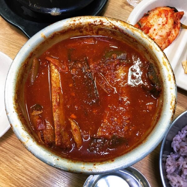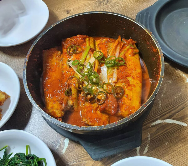 °¥Ä¡Á¶¸²°ú ȸ¹«Ä§ µîÀ» ÆÇ¸ÅÇÏ´Â ½Ä´çÀ¸·Î ÇöÁöÀÎÀÌ ÃßõÇÏ´Â ¸ÀÁýÀÌ´Ù. ¸Þ´º´Â °¥Ä¡Á¶¸²ºÎÅÍ ¸Å¿îÅÁ°ú µ¿ÅÂÇØ¹°ÅÁ, ¸¶¸¥ »ý¼±Âò°ú ȸ¹«Ä§ µîÀÌ ÀÖÀ¸¸ç µµ´Ù¸®¾¦±¹°ú ¸êÄ¡½Ó¹äÀº º½ °èÀý ¸Þ´º´Ù. µÎÅùÇÑ °¥Ä¡°¡ dz¼ºÇÏ°Ô µé¾î ÀÖ´Â °¥Ä¡Á¶¸²Àº Âó·³ ±¹¹°ÀÇ ¾çÀÌ ¸¹Àº ÆíÀÌ¸ç ¸¼°í °³¿îÇÑ ÇüÅ·Π¥Áö ¾Ê¾Æ ±ò²ûÇÏ°Ô ¸ÔÀ» ¼ö ÀÖ´Ù. Äᳪ¹°ÀÌ µé¾î ÀÖ´Â Á¡ÀÌ µ¶Æ¯Çϸç È£¹Ú°ú °¨ÀÚ, ¹« µî ä¼Ò°¡ ¿©·¯ °¡Áö·Î µé¾î°¡ ÀÖ´Ù. °°ÀÌ ³ª¿À´Â ¹Ø¹ÝÂù ¶ÇÇÑ ÇªÁüÇØ °ñ°í·ç ¸Ô±â ÁÁ´Ù.