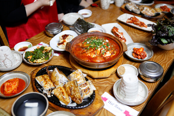´ëÀü¿¡ À§Ä¡ÇÑ ¼ûÀº °¥Ä¡Á¶¸² ¸ÀÁýÀ¸·Î °íµî¾î¹¬ÀºÁöÁ¶¸²µµ ÇÔ²² Àαâ ÀÖ´Â ½Ä´çÀÌ´Ù. Á¶¸²·ù ¿Ü¿¡µµ ´ß¹é¼÷°ú ¿À¸®¹é¼÷, ´ßººÀ½ÅÁ µîÀÌ ÀÖ´Â À̰÷Àº Æí¾ÈÇÑ ÁÖÅà ´À³¦ÀÇ °ø°£À¸·Î ÀÌ·ïÁ® ÀÖ´Ù. À½½Ä ¶ÇÇÑ ÇªÁüÇÑ ¹Ø¹ÝÂù°ú ÇÔ²² Á¦°øµÅ Áý¹ä °°Àº ´À³¦ÀÌ´Ù. °¢Á¾ ³ª¹°°ú »ø·¯µå, ±èÄ¡, ½Óä¼Ò¿Í ÇÔ²² ³ª¿À´Â °¥Ä¡Á¶¸²Àº ±¹¹°ÀÌ ³Ë³ËÇϸç ä¼Òµµ ³Ë³ËÇÏ°Ô µé¾î ÀÖ´Ù. ÃëÇâ¿¡ µû¶ó °íµî¾îÁ¶¸²¿¡ µé¾î°¡´Â ¹¬ÀºÁö¸¦ °¥Ä¡Á¶¸²¿¡µµ Ãß°¡Çؼ ¸ÔÀ» ¼öµµ ÀÖÀ¸´Ï Âü°íÇÏÀÚ.
