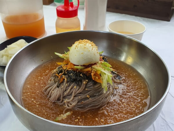 ¸íÅÂȸ³Ã¸éÀ» óÀ½ °³¹ßÇÑ °÷À̶ó°í ¾Ë·ÁÁ® ÀÖ´Â ³Ã¸é Àü¹®Á¡À¸·Î 1951³âºÎÅÍ Àå»ç¸¦ ÀÌ¾î ¿Â °¡°Ô¶ó°í ÇÑ´Ù. ´ëÇ¥ ¸Þ´ºÀÎ ÇÔÈï³Ã¸éºÎÅÍ ±âº» ¹°³Ã¸é°ú °¥ºñÅÁ, ¸¸µÔ±¹°ú ¼öÀ° µîÀÇ ¸Þ´ºµéÀÌ ÀÖÀ¸¸ç ¼öÀ°Àº µÅÁö°í±â¿Í ¼Ò°í±â µÎ °¡Áö Á¾·ù°¡ ÀÖ´Ù. ³Ã¸éÀ» ÁÖ¹®Çϸé À°¼ö°¡ ´ã±ä ÁÖÀüÀÚ¸¦ µÎ °³ °¡Á®´ÙÁִµ¥, Çϳª´Â »ç°ñÀ» ¿ì·Á³½ µû¶æÇÑ À°¼öÀ̸ç Çϳª´Â ³Ã¸é¿¡ ºÎ¾î ¸ÔÀ» ¼ö ÀÖ´Â ³ÃÀ°¼ö´Ù. ÀüºÐÀÌ µé¾î°¡ Â̱êÇÑ ¸é¹ß¿¡ ¸íÅ ȸ¹«Ä§ÀÌ ¿Ã¶ó°£ ÇÔÈï³Ã¸éÀº °¨Ä¥¸ÀÀÌ ÈǸ¢ÇÏ´Ù.