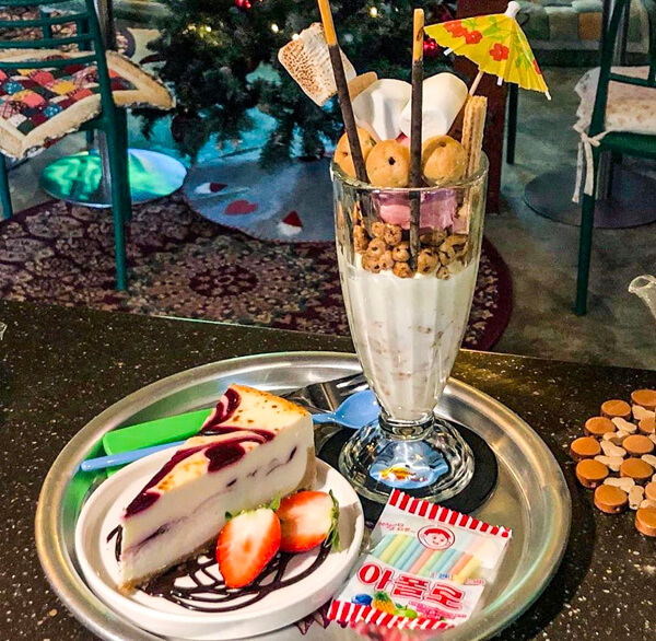 ÀüÅë½ÃÀå ³»¿¡ À§Ä¡ÇØ ÀÖ¾î ´õ¿í Á¤°Ü¿î ºÐÀ§±â¸¦ dz±â´Â °÷ÀÌ´Ù. ½Ã°ñÀÇ ´Ù¹æÀ» º¸´Â °Í °°Àº Ä«Æä ³»ºÎ´Â ¿À·¡µÈ Æ÷½ºÅÍ¿Í ÀçºÀƲ µîÀÇ ¿¾½º·¯¿î ¼ÒǰµéÀÌ °ø°£À» ä¿ì°í ÀÖ´Ù. ½Ã±×´Ïó À½·á´Â ±¸¸§¶ó¶¼¿Í ÈæÀÓÀÚ¶ó¶¼ÀÌ¸ç ´ÞÄÞÇÑ ÁÒ¸®Æþ ¼ÎÀÌÅ©¿Í ¿ä°ÅÆ® ¼ÎÀÌÅ©µµ ÀÖ´Ù. ²Ü¹ã¶ó¶¼¿Í ¿ÀÆ®¹Ð¶ó¶¼ µîÀÇ ¶ó¶¼ Á¾·ùµµ ´Ù¾çÇϸç ÀÎÀý¹Ì ¸À°ú ÈæÀÓÀÚ ¸ÀÀÇ ¼öÁ¦ ¾ÆÀ̽ºÅ©¸²µµ ÀÖ´Ù. °è¶õÀ» µ¿µ¿ ¶ç¿î ½ÖÈÂ÷¿Í ´Ù¹æÄ¿ÇÇ, ¾óÀ½À» ³Ö¾î ½Ã¿øÇÏ°Ô ¸Ô´Â ½ÄÇýµµ ºüÁú ¼ö ¾ø´Â ¸Þ´º´Ù.