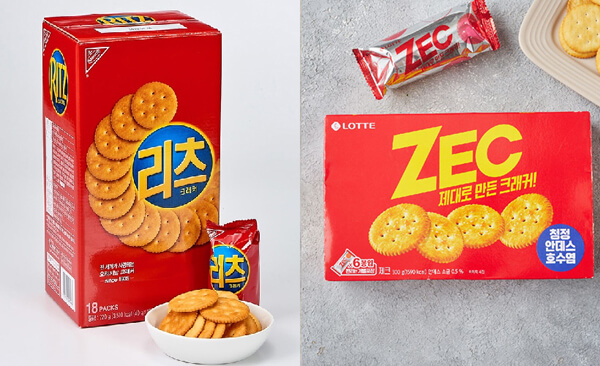 µ¿¼½ÄǰÀÇ ¸®Ã÷¿Í ·Ôµ¥Á¦°úÀÇ Á¦Å©´Â ¾óÇÍ ºÁ¼´Â ±¸ºÐÀÌ Èûµé Á¤µµ·Î À¯»çÇÏ´Ù. µ¿±×¶õ ¸ð¾çÀÇ ±¸¸Û ¶Õ¸° °úÀÚÀÇ ¸ð¾çµµ ¶È°°°í, ÆÐŰÁöµµ ºÓÀº»öÀ¸·Î ºñ½ÁÇÑ ÅæÀÌ´Ù. ¸®Ã÷´Â 1935³â Ãâ½ÃµÈ ¹Ì±¹ ³ªºñ½ºÄÚ»çÀÇ ¼Öƾ Å©·¡Ä¿·Î, À¯»çÇÑ ÇüÅÂÀÇ °úÀÚµéÀÇ ¿øÁ¶ °ÝÀÎ Á¦Ç°ÀÌ´Ù. ·Ôµ¥Á¦°ú´Â À̸¦ º¥Ä¡¸¶Å·Çؼ Àû´çÇÏ°Ô Â§¸ÀÀ» ³Ö°í ¹öÅÍÀÇ Ç³¹Ì¸¦ ÁÙ¿©¼ Çѱ¹ÀûÀÎ Å©·¡Ä¿ Á¦Å©¸¦ Ãâ½ÃÇß°í, ¶Ç ¼º°øÀ» °Åµ×´Ù.