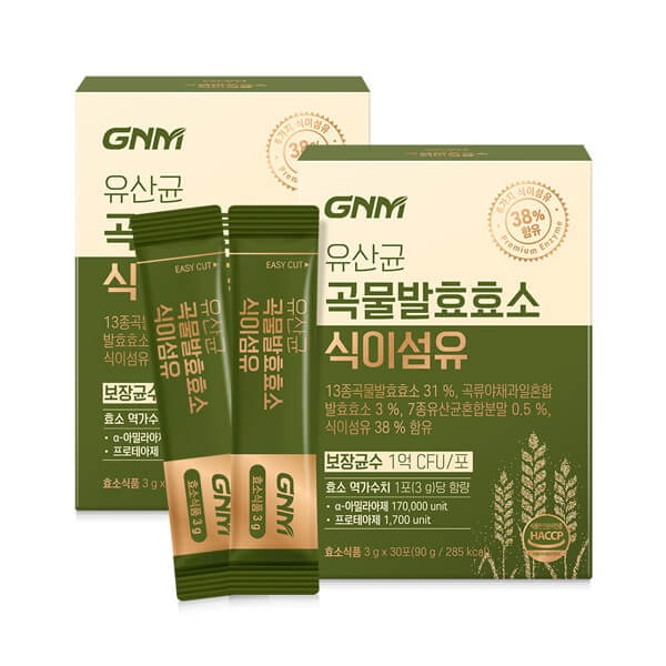 GNM ÀÚ¿¬ÀÇ Ç°°ÝÀÇ À¯»ê±Õ °î¹°¹ßȿȿ¼Ò ½ÄÀ̼¶À¯´Â °æÀï·ÂÀ» °®Ãá ¿ì¼ö±â¾÷À¸·Î ¼±Á¤µÈ GNM ÀÚ¿¬ÀÇ Ç°°Ý¿¡¼ ¹ß¸ÅÇÑ Á¦Ç°ÀÌ´Ù. À¯»ê±Õ°ú ½ÄÀ̼¶À¯±îÁö ƯÇã¹ÞÀº ±ÕÁÖ·Î ´ã¾ÒÀ¸¸ç 1Æ÷´ç 1¾ï ±Õ¼öÀÇ »ýÀ¯»ê±Õ 7Á¾°ú ½Ä¹°À¯·¡¼º ½ÄÀ̼¶À¯±îÁö Æ÷ÇԵǾî ÀÖ´Ù. ¼·Ãë ¹æ¹ýÀº 1ÀÏ 1ȸ, 1Æ÷¸¦ ±×´ë·Î ¶Ç´Â ÃæºÐÇÑ ¹°°ú ÇÔ²² ¼·ÃëÇÏ¸é µÈ´Ù. °í¼ÒÇÑ °î¹° ¸ÀÀÌ ³ª´Â ºÐ¸» ½ºÆ½À¸·Î µÈ ÇüÅÂÀ̸ç, HACCP ÀÎÁõ Á¦Á¶ ½Ã¼³¿¡¼ °¡°øµÈ ¾ÈÀüÇÑ Á¦Ç°ÀÌ´Ù.