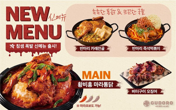Àü±â±¸ÀÌÅë´ß ÇÁ·£Â÷ÀÌÁî ±¸µµ·ÎÅë´ßÀº ½Å¸Þ´º ¶óÀξ÷ 4Á¾À» Ãâ½ÃÇß´Ù. 4Á¾ Áß¿¡´Â ¸¶¶ó¸¦ Ȱ¿ëÇÑ ¸Þ´ºµµ Àִµ¥, ¹Ù·Î ¡®È²ºñÈ« ¸¶¶óÅë´ß¡¯ÀÌ´Ù. ȲºñÈ« °íÃß ºÎ°¢°ú ²Ê¸®°íÃ߸¦ ³Ö¾î ¸ÀÀ» ´õ dzºÎÇÏ°Ô ¸¸µç ¸¶¶óÅë´ßÀÌ´Ù. ÀÌ ¿Ü¿¡ Ãß¾ïÀÇ ¶±ººÀÌ ¼Ò½º º£À̽ºÀÇ ¡®¹Ý¸¶¸® Áï¼®¶±ººÀÌ¡¯, ¶ß²öÇÑ Ä«·¹ ¼Ò½º¸¦ Ȱ¿ëÇÑ ¡®¹Ý¸¶¸® Ä«·¹Àü°ñ¡¯, ¹öÅÍÀÇ Ç³¹Ì¸¦ »ì¸° ¡®¹öÅͱ¸ÀÌ ¿À¡¾î¡¯°¡ ÇÔ²² Ãâ½ÃµÆ´Ù. ȲºñÈ« ¸¶¶óÅë´ßÀÇ ¸ÅÀå ÆÇ¸Å°¡´Â 24,900¿øÀÌ´Ù.
