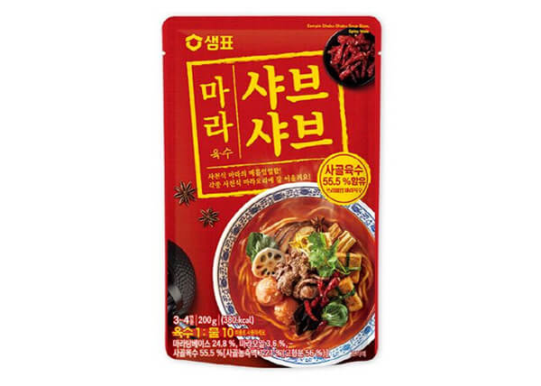 »ùÇ¥´Â ȲöÇÑ »çõ½Ä ¸¶¶ó ¿ä¸®¸¦ ¸ÀÀÖ°Ô Áñ±æ ¼ö ÀÖ´Â ¡®»ùÇ¥ ¸¶¶ó »þºê»þºê À°¼ö¡¯¸¦ Ãâ½ÃÇß´Ù. ¸¶¶ó ƯÀ¯ÀÇ ¸ÅÄÞÇÏ°í ¾ó¾óÇÑ Ç³¹Ì°¡ »ç°ñÀ°¼öÀÇ ºÎµå·¯¿î °¨Ä¥¸À°ú ¾î¿ì·¯Á® Çѱ¹ÀÎÀÇ ÀÔ¸À¿¡ ²À ¸Â´Â Á¦Ç°ÀÌ´Ù. ±¹³» ¼ÒºñÀÚµéÀÌ ±¹¹°À» ¶°¸Ô±â ÁÁ¾ÆÇÏ´Â Á¡¿¡ Âø¾ÈÇØ, ±í°í ÁøÇÑ ¸ÀÀ» ³Â´Ù. À°¼ö¿Í ¹°À» 1:10 ºñÀ²·Î »ç¿ëÇÏ´Â ³óÃà À°¼ö´Ù. º» Á¦Ç°ÀÇ ±ÇÀå ¼ÒºñÀÚ°¡´Â 200g ±âÁØ 2,880¿øÀÌ´Ù.