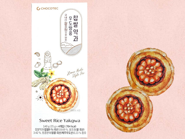 ÃÊÄÚÅØÀº ¡®Á¦ÁÖ ¿ìµµ¶¥Äá Âý½Ò ¾à°ú Ÿ¸£Æ®¡¯¸¦ °ø±ÞÇϰí ÀÖ´Ù. ´ã¹éÇÏ°Ô ±¸¿î Ÿ¸£Æ®¿¡ dz¹Ì°¡ ÁÁÀº ÇʸµÀ» ³Ö°í, À§¿¡´Â ±¹³»»ê Âý½Ò·Î ¸¸µç ¾à°ú¸¦ ¾ñ¾ú´Ù. ¾à°ú´Â âÆòÇѰúÀÇ À¯¿µ±º ¸íÀÎÀÌ ¸¸µç ¹Ì´Ï¾à°ú¸¦ Ȱ¿ëÇß´Ù. Ÿ¸£Æ® ¼Ó¿¡´Â ´ÞÄÞÇÑ Á¶Ã», ±×¸®°í °í¼ÒÇÑ ¿ìµµ¶¥ÄáÀÌ ÇÔÀ¯µÅ ÀÖ´Ù. ¾à°úÀÇ ±¹»ê Âý½Ò ºñÀ²Àº 9%¸ç, Á¶Ã» ¶ÇÇÑ ±¹³»»ê Àç·á¸¦ Ȱ¿ëÇØ ¸¸µé¾ú´Ù. 4°³°¡ µç ÆÐŰÁö ÇϳªÀÇ ÆÇ¸Å°¡´Â 5,000¿øÀÌ´Ù.