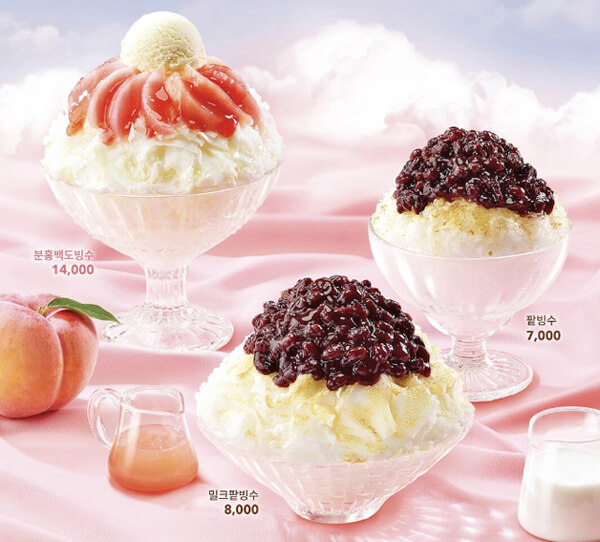 ¿£Á¦¸®³Ê½º´Â µðÀúÆ® ºù¼ö 3Á¾À» Ãâ½ÃÇß´Ù. À̹ø¿¡ ¼±º¸ÀÎ ½ÅÁ¦Ç°Àº Ŭ·¡½ÄÇÑ ÆÏ º£À̽ºÀÇ ºù¼ö 2Á¾°ú º¹¼þ¾Æ¸¦ Ȱ¿ëÇÑ ºù¼ö µî ÃÑ 3Á¾ÀÌ´Ù. ¸ðµÎ ¿øÀç·á º»¿¬ÀÇ ¸ÀÀ» dzºÎÇÏ°Ô »ì¸° °ÍÀÌ Æ¯Â¡ÀÌ´Ù. ¡®ÆÏºù¼ö¡¯´Â ´«²É ºù¼ö¿¡ ÆÏ°ú Äá°í¹°À» ¿Ã¸° Á¤Åë ºù¼ö´Ù. ¡®¹ÐÅ©ÆÏºù¼ö¡¯´Â ¿ìÀ¯ ¾óÀ½¿¡ ¿¬À¯, ÆÏ, Äá°í¹° µîÀ» ´õÇß´Ù. º¹¼þ¾Æ¸¦ Ȱ¿ëÇÑ ¡®ºÐÈ«¹éµµºù¼ö¡¯´Â À̸§ ±×´ë·Î º¹¼þ¾Æ¸¦ Ȱ¿ëÇÑ ºù¼ö ¸Þ´º´Ù. ´ëÇ¥ ¸Þ´º·Î ²ÅÀ» ¼ö ÀÖ´Â ºÐÈ«¹éµµºù¼öÀÇ ¸ÅÀå ÆÇ¸Å°¡´Â 14,000¿øÀÌ´Ù.