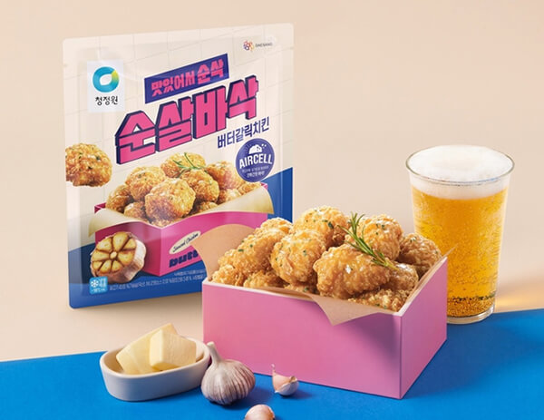 ´ë»ó ûÁ¤¿øÀº ½ÅÁ¦Ç° ¡®¼ø»ì¹Ù»è ¹öÅͰ¥¸¯Ä¡Å²¡¯À» Ãâ½ÃÇÏ¸ç ³Ãµ¿Ä¡Å² Á¦Ç° ¶óÀξ÷À» È®ÀåÇß´Ù. À̹ø ½ÅÁ¦Ç°Àº ƯÁ¦ ¼Ò½º¿¡ °¢º°È÷ °øÀ» µé¿´´Ù. ÇÁ¶û½º 3´ë ¸íǰ ¹öÅÍ·Î ¼Õ²ÅÈ÷´Â ÀÌÁî´Ï ¹öÅÍ¿¡ ÁøÇÑ ¸¶´ÃÇâÀ» ´õÇØ °í¼ÒÇÑ Ç³¹Ì¿Í ¾Ë½ÎÇÑ ¸ÀÀÇ ¹öÅÍ °¥¸¯ ¼Ò½º¸¦ °³¹ßÇÑ °ÍÀÌ´Ù. 16½Ã°£ ÀÌ»ó Àú¿Â ¼÷¼ºÇÑ ±¹³»»ê ´ß°¡½¿»ì¿¡ ´Ù¼öÀÇ °ø±âÃþÀ» »ý¼ºÇÑ Æ¢±è¿ÊÀ» ÀÔÈù µÚ µÎ ¹ø Æ¢°Ü³Â´Ù. °¡°ÝÀº 7,980¿øÀÌ´Ù.