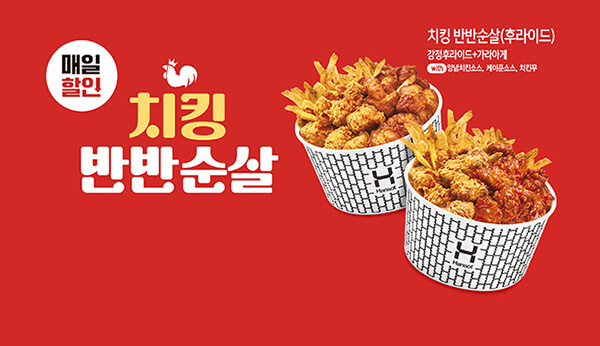 µµ½Ã¶ô ÇÁ·£Â÷ÀÌÁî ÇѼܵµ½Ã¶ôÀº °¡¼ººñ ġŲ ½Å¸Þ´º ¡®Ä¡Å· ¹Ý¹Ý¼ø»ì 2Á¾¡¯À» Ãâ½ÃÇß´Ù. ½Å¸Þ´º´Â ġŷ ¹Ý¹Ý¼ø»ì(ÇÁ¶óÀ̵å)°ú ġŲ ¹Ý¹Ý¼ø»ì ¾ç³ä(ÇÁ¶óÀ̵å&¾ç³ä)ÀÇ 2Á¾ÀÌ´Ù. 100% ´ß´Ù¸®»ì¿¡ ¾ãÀº Æ¢±è¿ÊÀ» ÀÔÇô ´ã¹éÇÑ ¸À°ú ¹Ù»èÇÑ ½Ä°¨À» »ì·È´Ù. ġŲ°ú ÇÔ²² °çµéÀ̱â ÁÁÀº ¸ÅÄÞ©ÇÑ ¸ÀÀÇ ÄÉÀÌÁØ ÇÁ¶óÀÌ¿Í ¾Æ»èÇÑ Ä¡Å²¹«¸¦ ÇÔ²² ´ã¾Æ dz¼ºÇÏ°Ô Á¦°øÇÑ´Ù. ġŷ ¹Ý¹Ý¼ø»ìÀÇ ¸ÅÀå ÆÇ¸Å°¡´Â 16,900¿øÀÌ´Ù.
