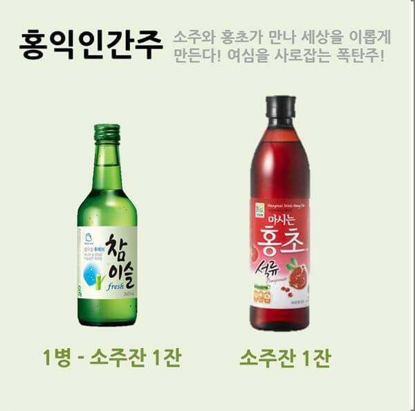 ¼ÒÁÖ¿Í È«Ãʰ¡ ¸¸³ª ¼¼»óÀ» ÀÌ·Ó°Ô ¸¸µç´Ù!¶ó´Â ¶æÀ» °¡Áø È«ÀÍÀΰ£ÁÖ! È«ÀÍÀΰ£ÁÖ´Â ¼ÒÁÖ ÇѺ´À» µû¼ ¼ÒÁÖ 1ÀÜÀ» ´ú¾î³»°í, È«Ãʸ¦ ´ú¾î³½ ¼ÒÁÖ¸¸Å º´ ¾È¿¡ ³Ö¾î Èçµé¾îÁÖ¸é µÈ´Ù. ¸¹ÀÌ ³ÖÁö ¾Ê¾Æµµ »öÀÌ ¿µ·ÕÇÏ´Ï ¿¹»Ú°í ¾ËÄÝÇâÀÌ °ÇÏÁö ¾Ê¾Æ ƯÈ÷ ¿©ÀÚµéÀÌ ÁÁ¾ÆÇÏ´Â ÆøÅºÁÖ´Ù.