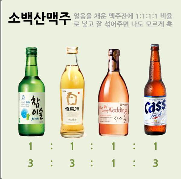 ´Ù¸¥ ÆøÅºÁÖ¿¡ºñÇØ ´Ù¾çÇÑ ¼úÀÌ µé¾î°¡´Â ¼Ò¹é»ê¸ÆÁÖ´Â ¼úÀÌ ½ë »ç¶÷µµ µÎ¼¼ÀÜ ¸¶½Ã´Ùº¸¸é ÈÅ °¡°Ô ¸¸µå´Â °·ÂÇÑ ÆøÅºÁÖ´Ù. ¾óÀ½À» ä¿î ¸ÆÁÖÀÜ¿¡ ¼ÒÁÖÀÜ 1ÀÜ ¸¸ÅÀÇ ¼ÒÁÖ, ¹é¼¼ÁÖ, »ê»çÃá, ¸ÆÁÖ¸¦ 1:1:1:1 ºñÀ² or 3:3:1:3 ºñÀ²·Î ³Ö°í Àß ¼¯¾îÁØ´Ù. ¾óÀ½À» ³Ö¾î ½Ã¿øÇÑ ¸À¿¡ Ȧ¦ Ȧ¦ ¸¶½Ã´Ùº¸¸é ¾î´À»÷°¡ ±â¾î´Ù´Ï´Â ÀÚ½ÅÀ» ¹ß°ßÇÒÁöµµ.