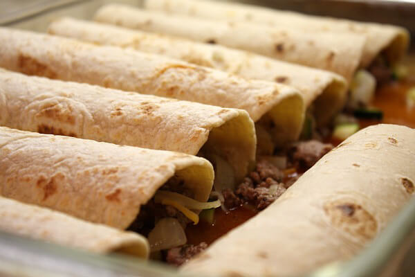 ¿£Ä¥¶ó´Ù´Â ¶Ç¶ì¾Æ »çÀÌ¿¡ °í±â, ÇØ»ê¹°, ¾ßä, Ä¡Áî µîÀ» ³Ö°í µ¿±×¶þ°Ô ¸·´ë ¸ð¾çÀ¸·Î ¸»¾Æ ¼Ò½º¸¦ »Ñ¸° ´ÙÀ½ ¿Àºì¿¡ ±¸¿ö ¸Ô´Â ¸ß½ÃÄÚ ¿ä¸®·Î, ¿£Ä¥¶ó´Ù¸¦ ¸¸µé ¶§ »ç¿ëµÇ´Â Àç·á·Î´Â ¶Ç¶ì¾Æ, ¼è°í±â ¶Ç´Â ´ß°í±â, ¾çÆÄ, ¸¶´Ã, °íÃß, Å丶Åä¼Ò½º, Ä¥¸® ÆÄ¿ì´õ, »ì»ç¼Ò½º, ¿Ã¸®ºê, ü´õÄ¡Áî, »þ¿öÅ©¸²ÀÌ ÀÖ´Ù.